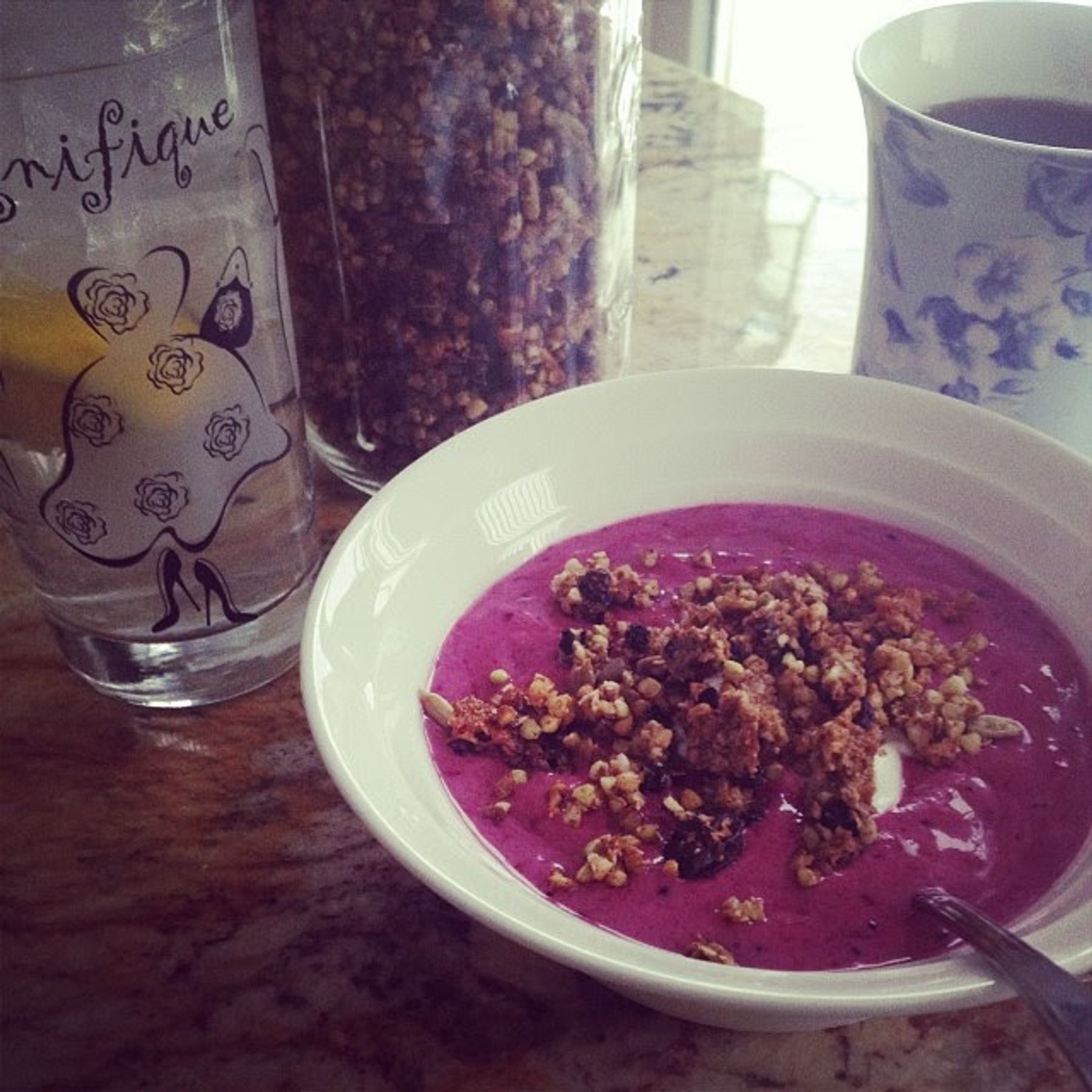 Remove and let cool. Enjoy by itself, in a bowl with milk/milk substitute, or top off your smoothie bowl like I did!