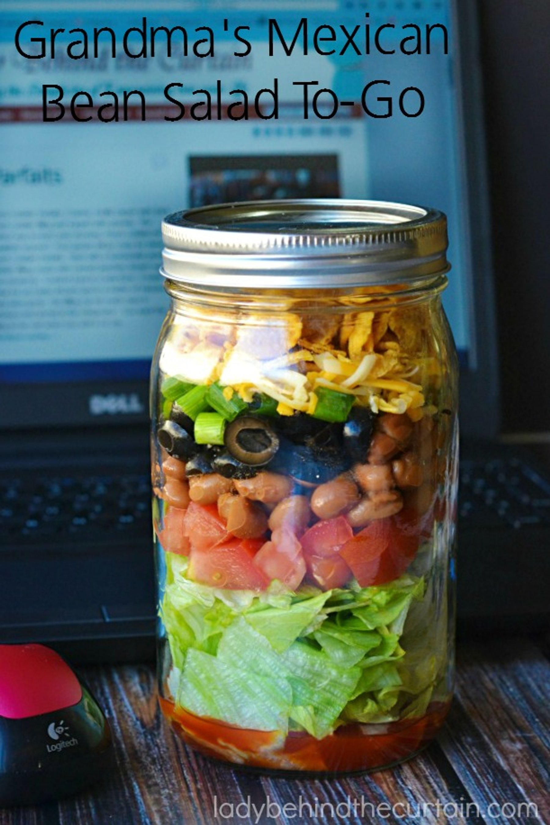 The perfect take along lunch. Filled with nutritious ingredients. Just shake….shake….shake and you have a salad that is coated in dressing and ready to eat. Perfect for a make ahead meal.