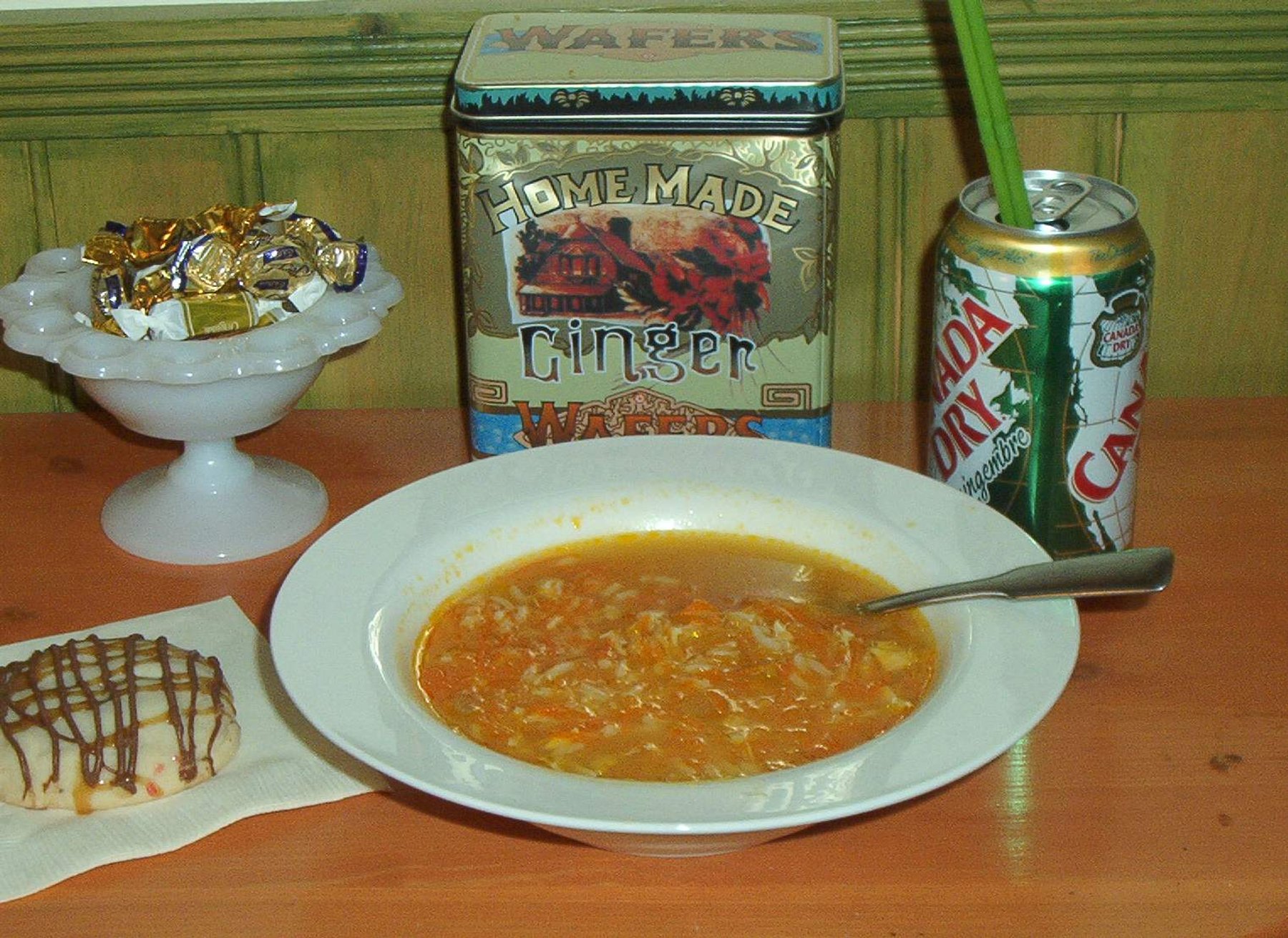 While the chicken is cooling, coarsely grate the carrots and slice the celery. Taste the stock and adjust seasoning , then heat the stock to boiling, and add the vegetables and rice. Chop chicken and add to soup. Cook until heated through.