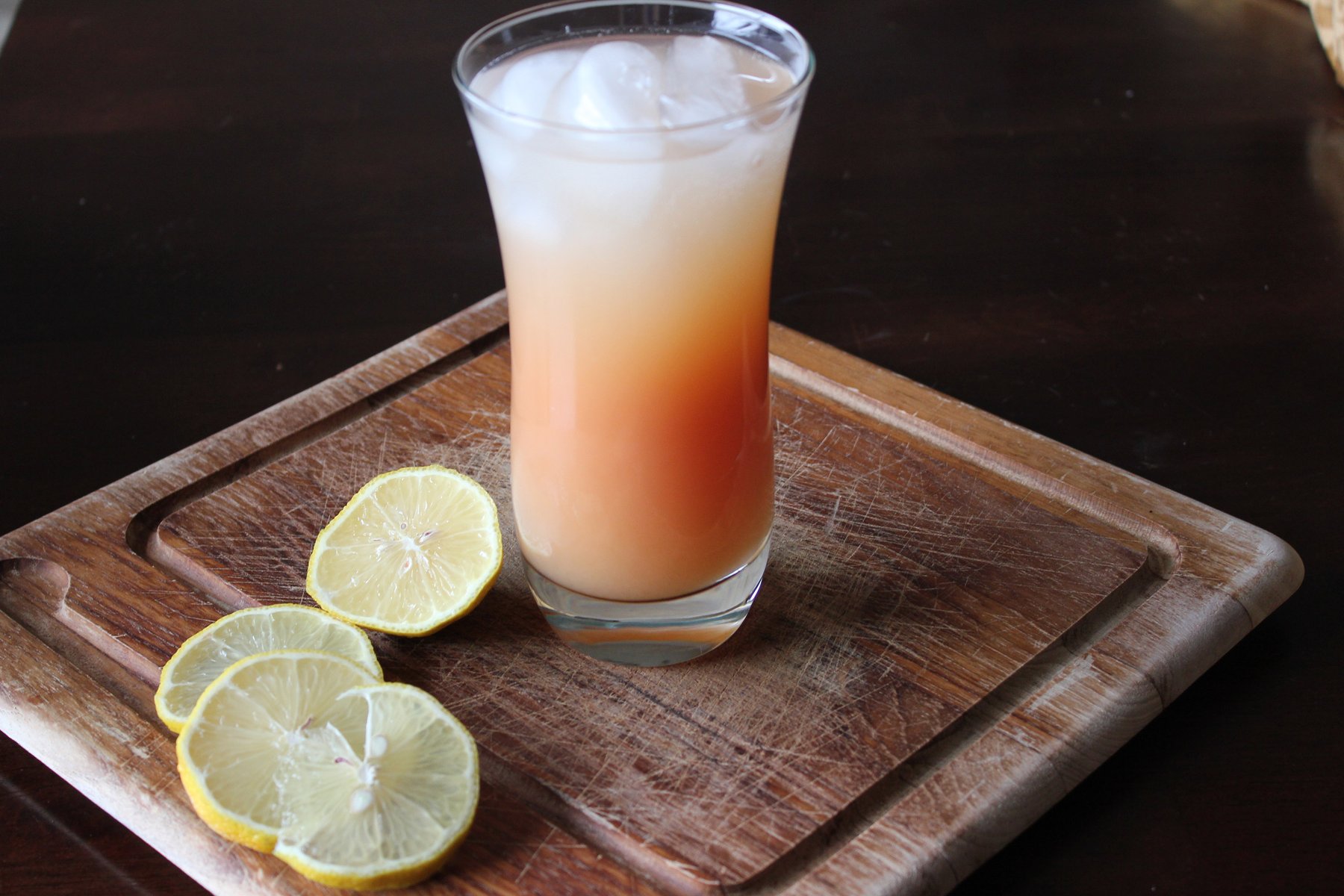 Fill the remainder of the glass with equal parts grapefruit juice and carbonated water