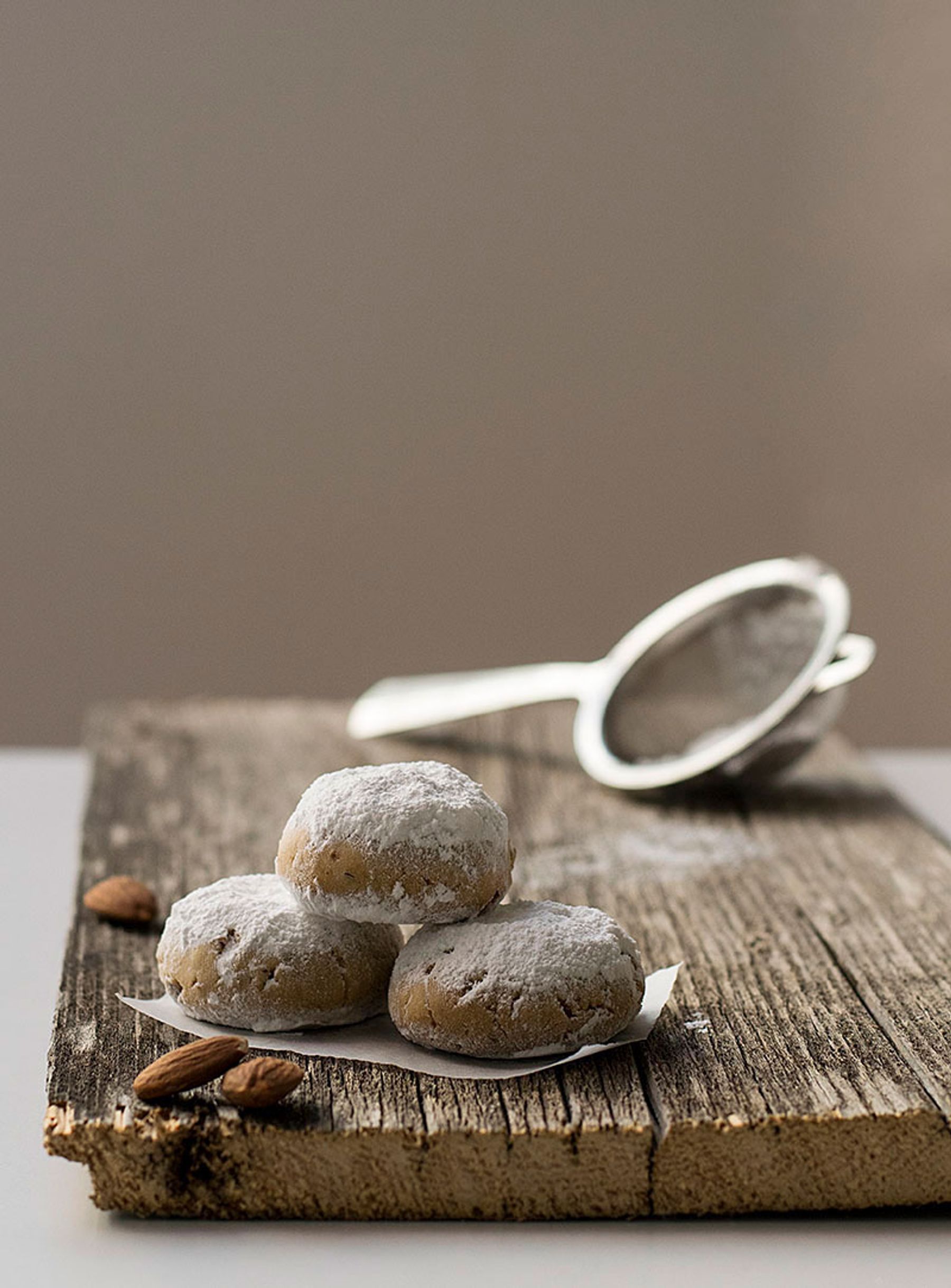 Roasted almonds and real butter make these cookies irresistible! Coat with lots of confectioners’ sugar for a snowy effect!