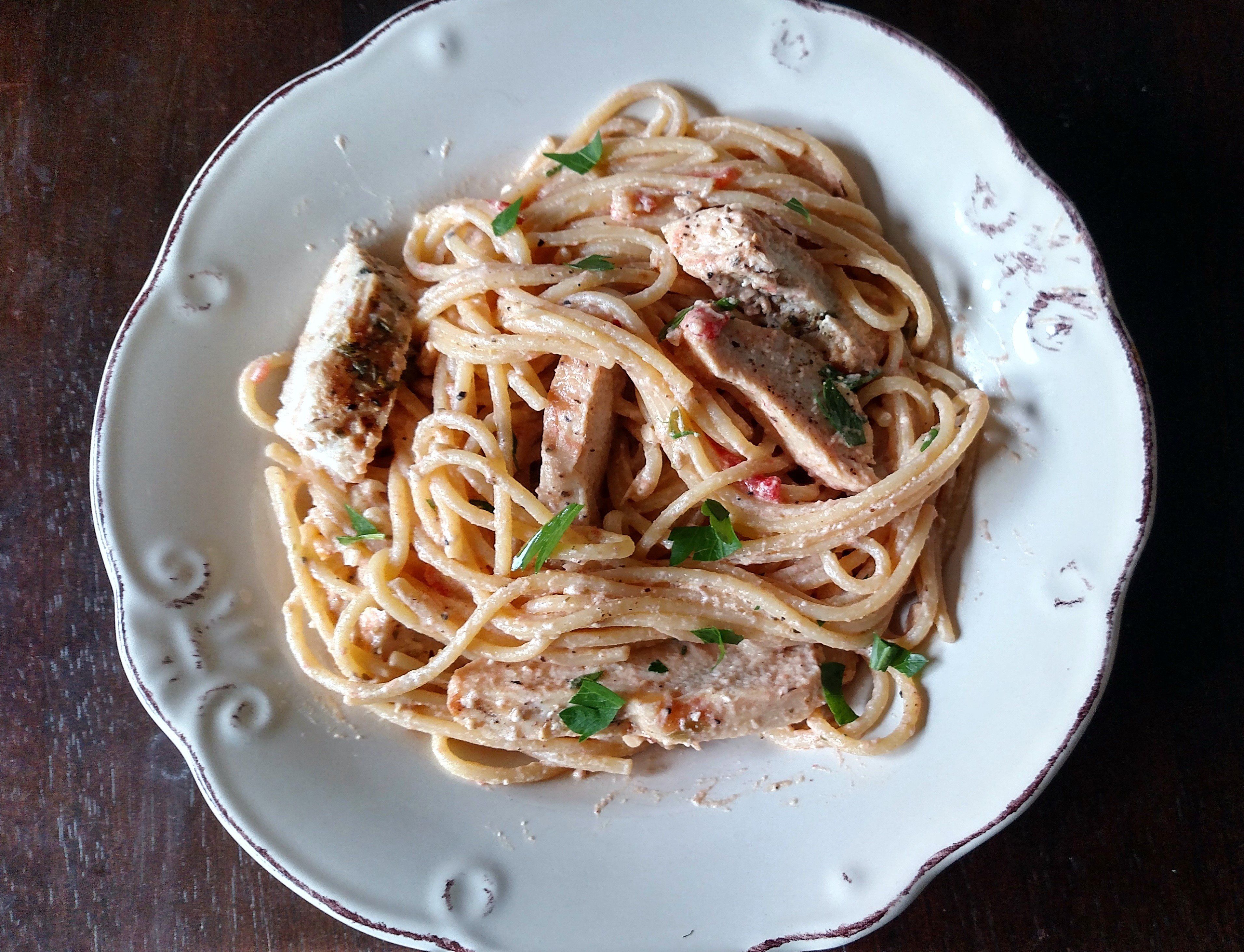 Greek Chicken Pasta with Feta Cream Sauce is a delicious pasta dinner with marinated chicken and tangy Greek flavors, all in a wonderful, creamy sauce made with feta cheese.