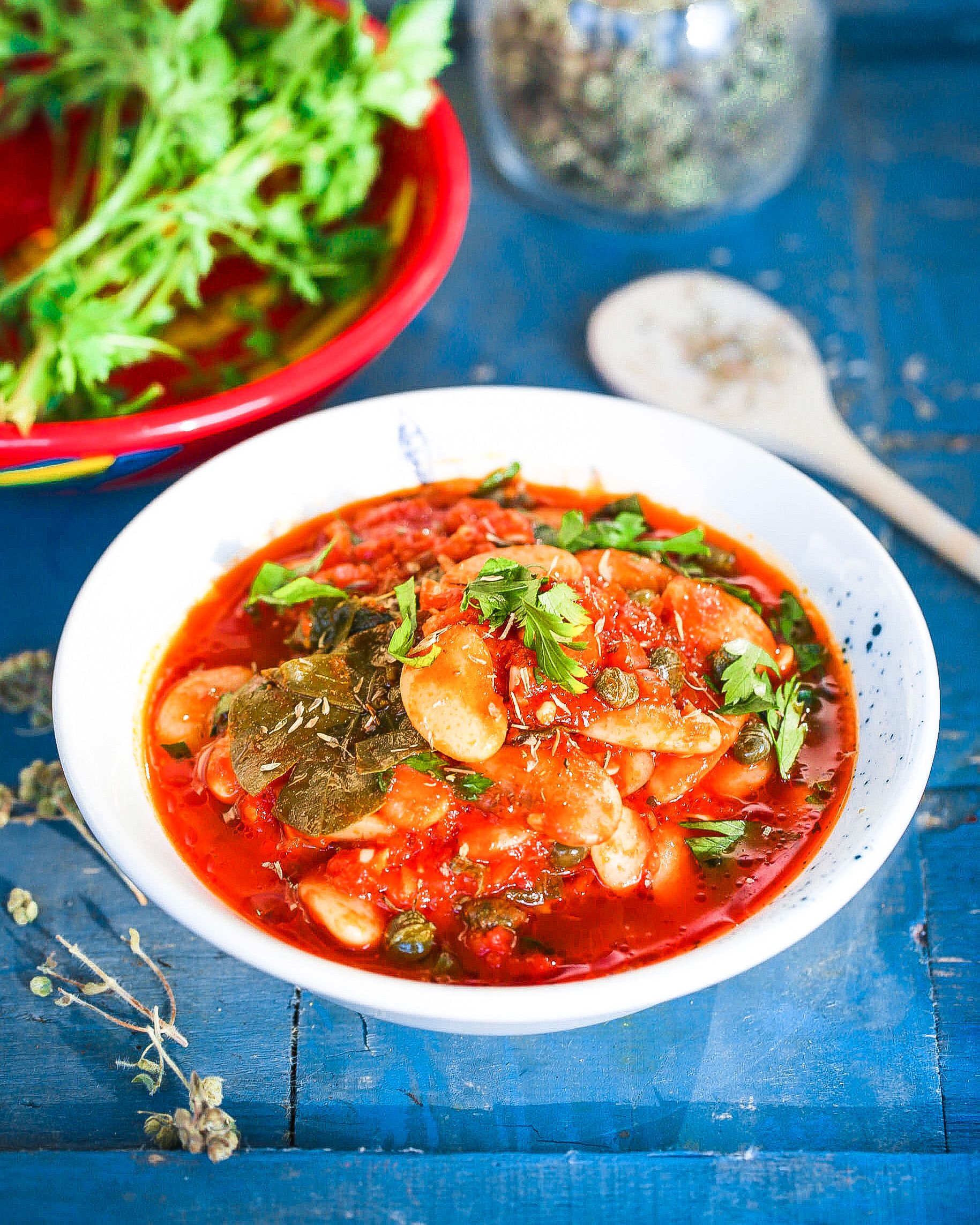 This delicious and healthy dish of lima beans is stewed with garlic, onions, tomatoes, capers and caper leaves, and flavoured with thyme and parsley, is based on the Greek caper giachni. Regardless, whether you have caper leaves or not, my vegan lima bean recipe below will help you share some of these favours of Greece with your family and friends!