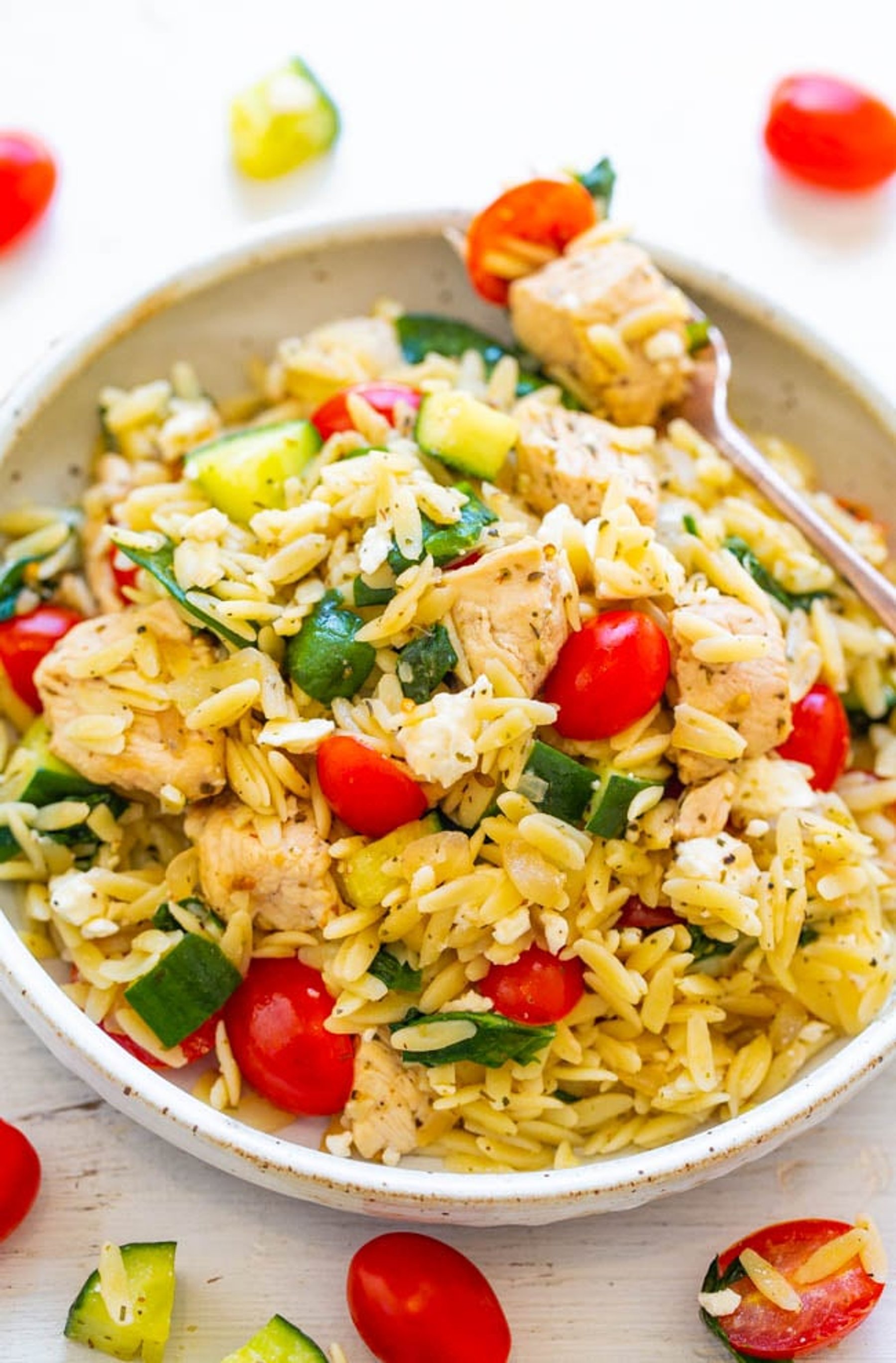 Greek Lemon Chicken and Orzo – EASY, ready in 25 minutes, and feeds a crowd!! Juicy lemon chicken with orzo, fresh spinach, cucumbers, and tomatoes make this a dinnertime WINNER! Great for parties, picnics, and potlucks!! This easy Greek lemon chicken is so flavorful and juicy. Combined with al dente orzo, cucumbers, tomatoes, and fresh …