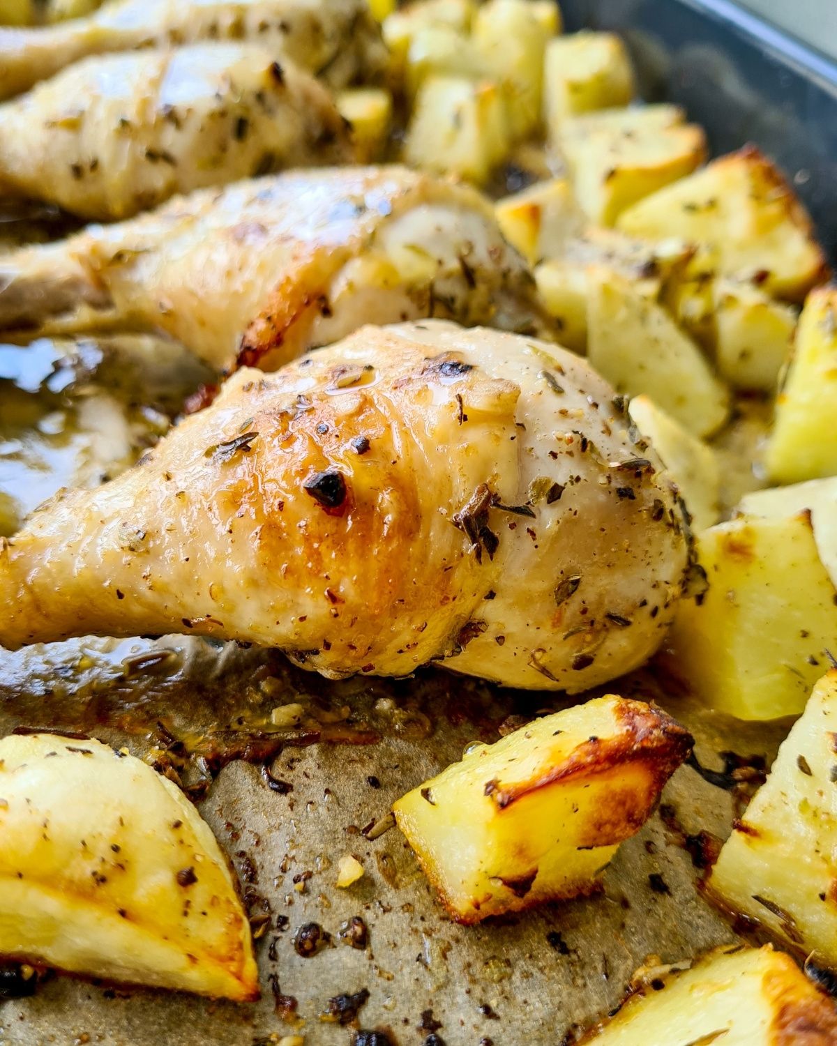 Greek-style chicken and potato bake CasuallypeckishNovember 14, 2020 50 Lemony, garlicky and filled with oregano aromatics. This one-pan Greek-style chicken and potato bake is incredibily easy, budget-friendly and delicious!4Visit Casually Peckish for full recipe! See the full directions on my site