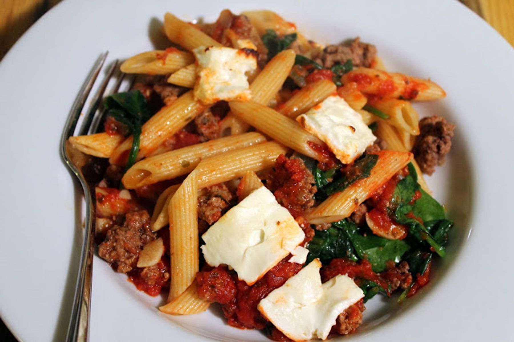 Preheat oven to 400 degrees. In a large skillet heat oil and sauté onion until it begins to soften 1-2 minutes. Add garlic and cook for an additional minute. Stir in ground beef and lamb, breaking it up...