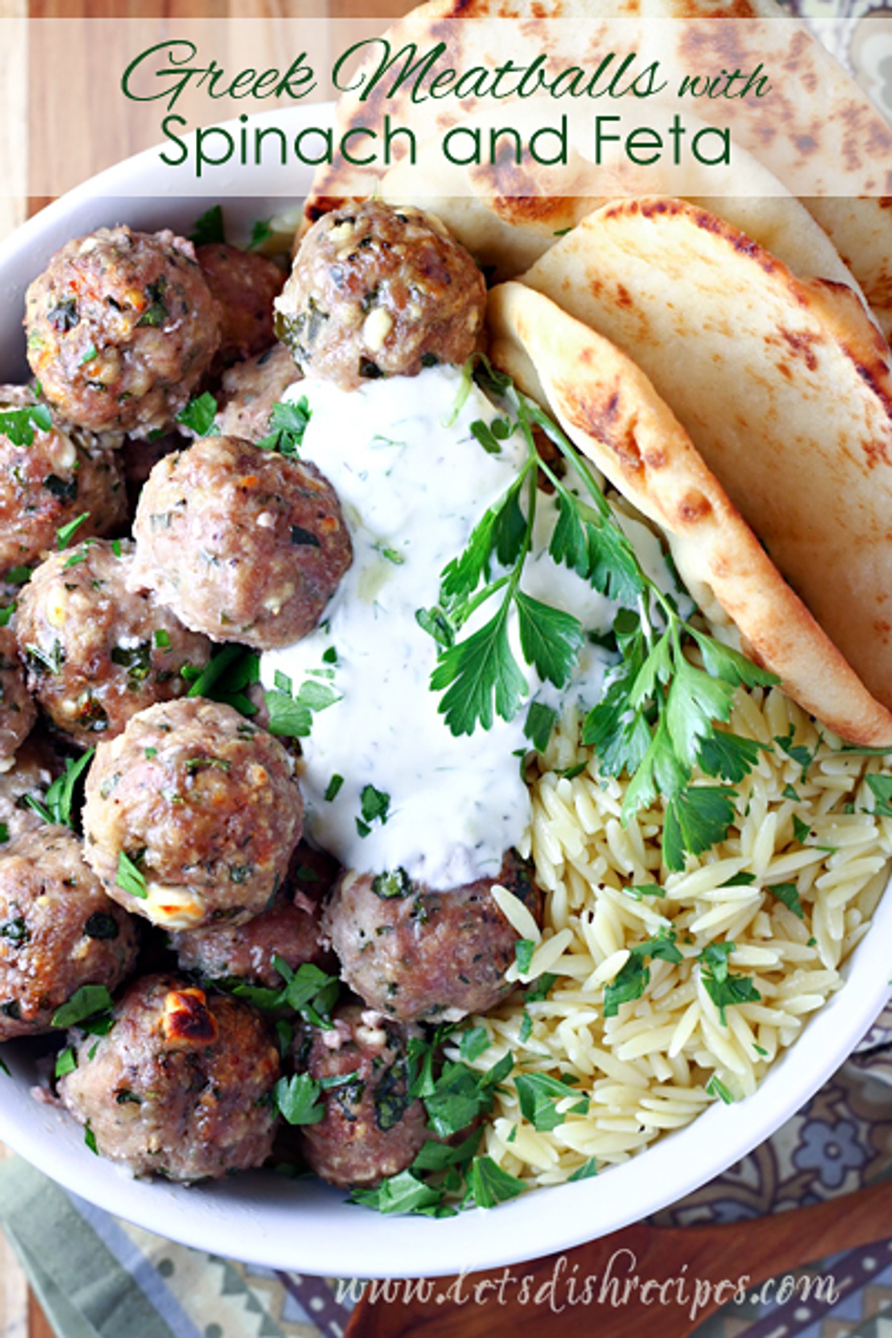 Ground turkey meatballs are loaded with feta cheese, spinach and Greek herbs and spices.
