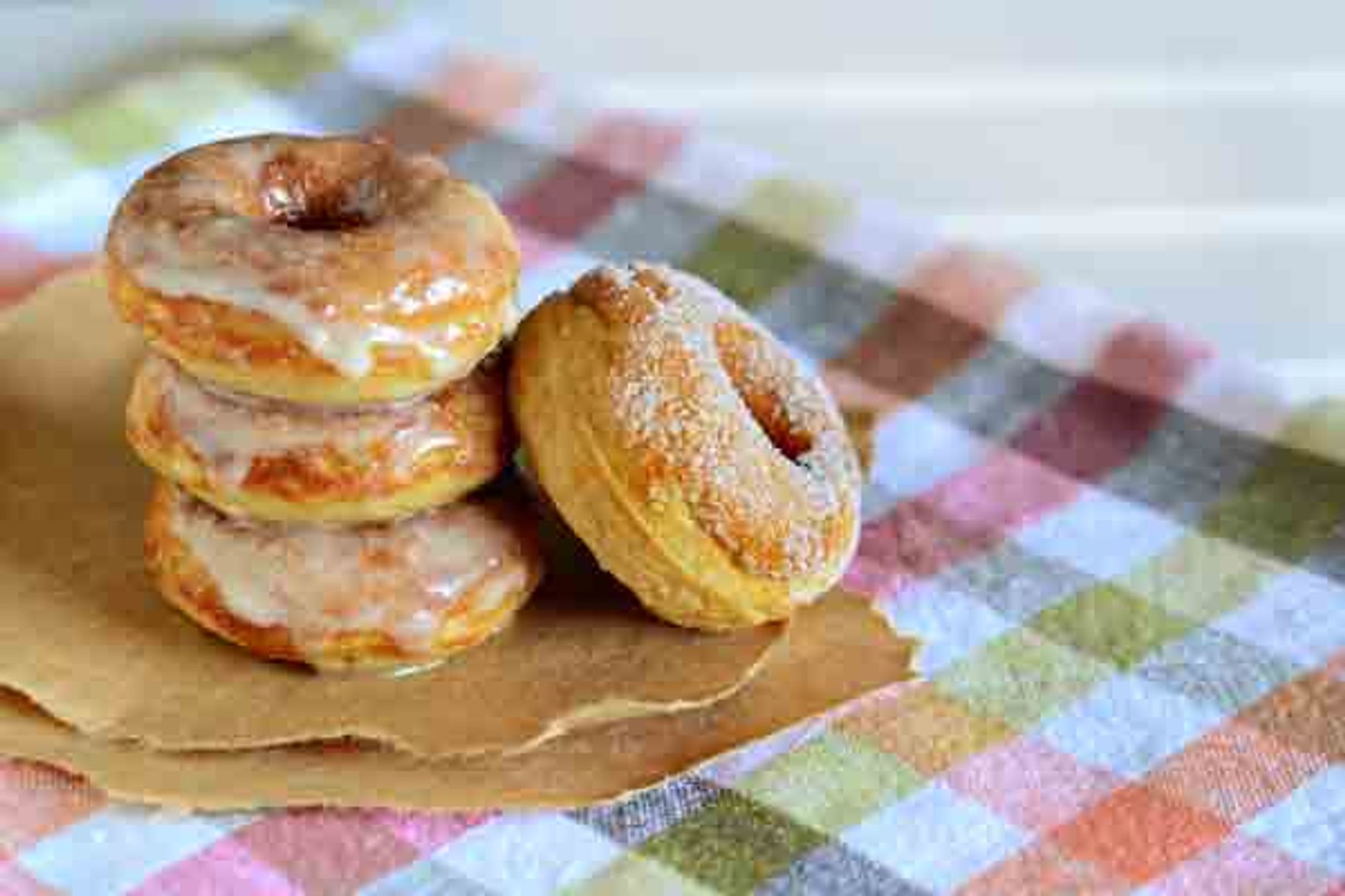 Mix all dry ingredients together until well-blended. Add in the Greek yogurt and the apple cider and mix again. Do not over mix as it will make the donuts tough. You may need a...