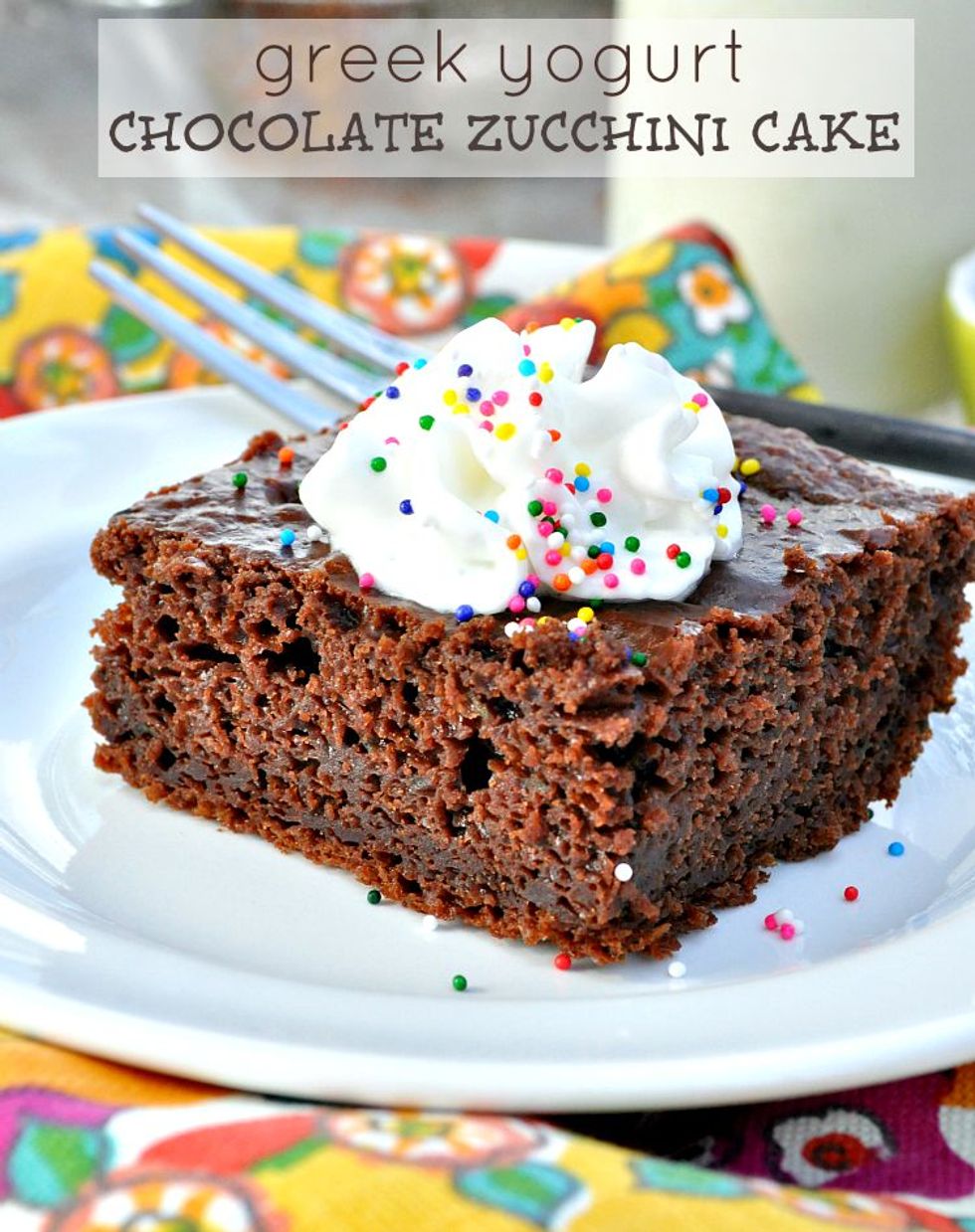 No eggs, no butter and no oil! You only need 4 ingredients for this healthy, low calorie Greek Yogurt Chocolate Zucchini Cake! Best of all, this cake is 100% kid-approved!
