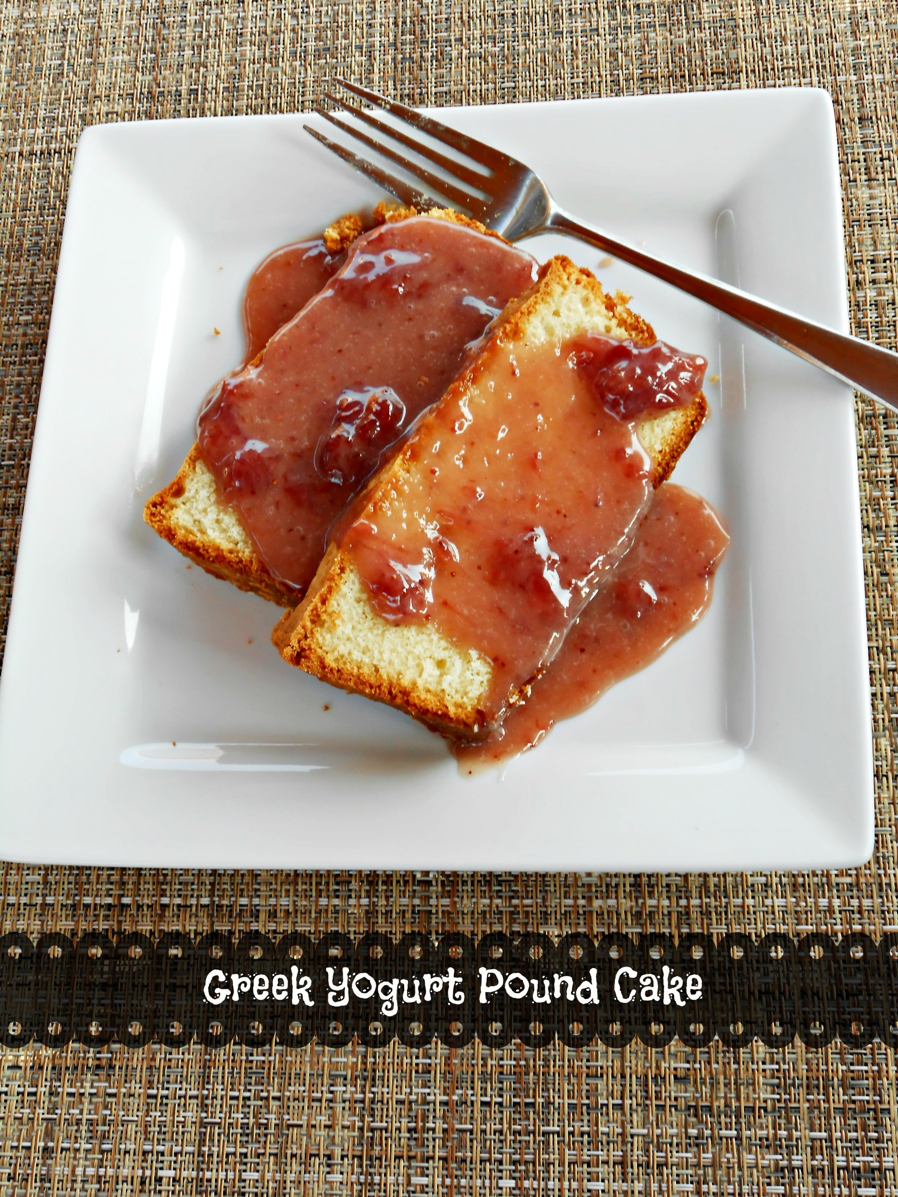 Greek Yogurt Pound Cake with White Chocolate Strawberry Sauce