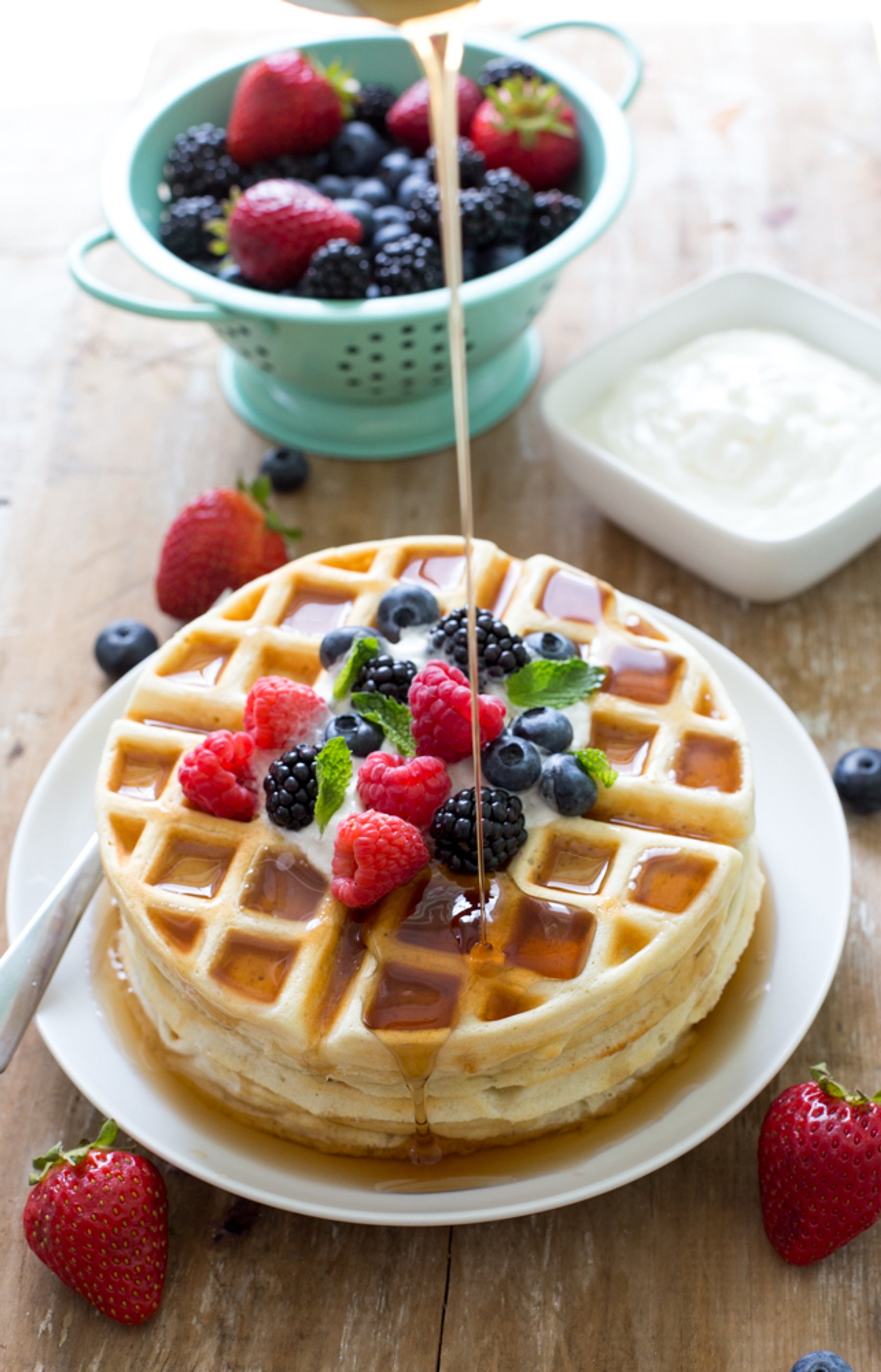 Soft and Fluffy Greek Yogurt Waffles. Crispy on the outside and soft on the inside. They take less than 30 minutes to make and are the perfect way to start your day!