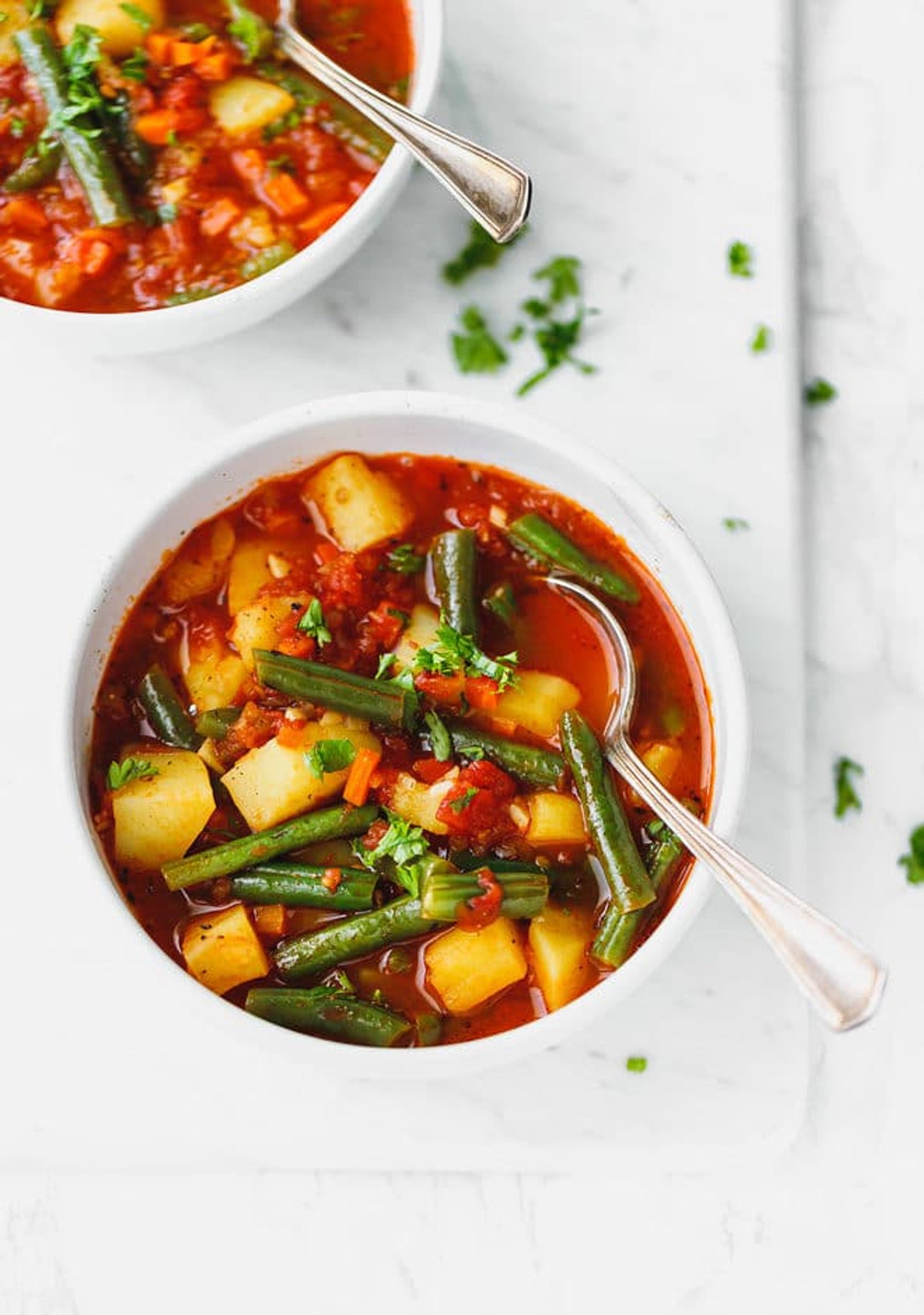 This colorful green bean soup is delicious for any time of the year.