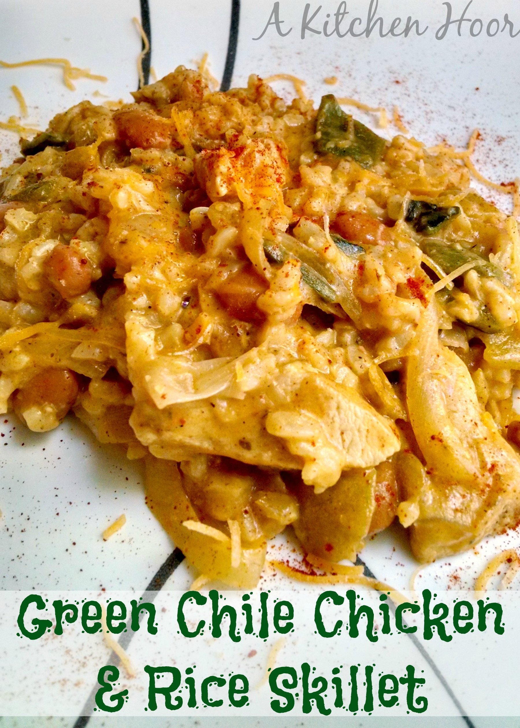 A failed attempt at a green chile chicken stir-fry, this Green Chile Chicken and Rice Skillet dinner is tasty, creamy and with just enough spicy to make it delicious!