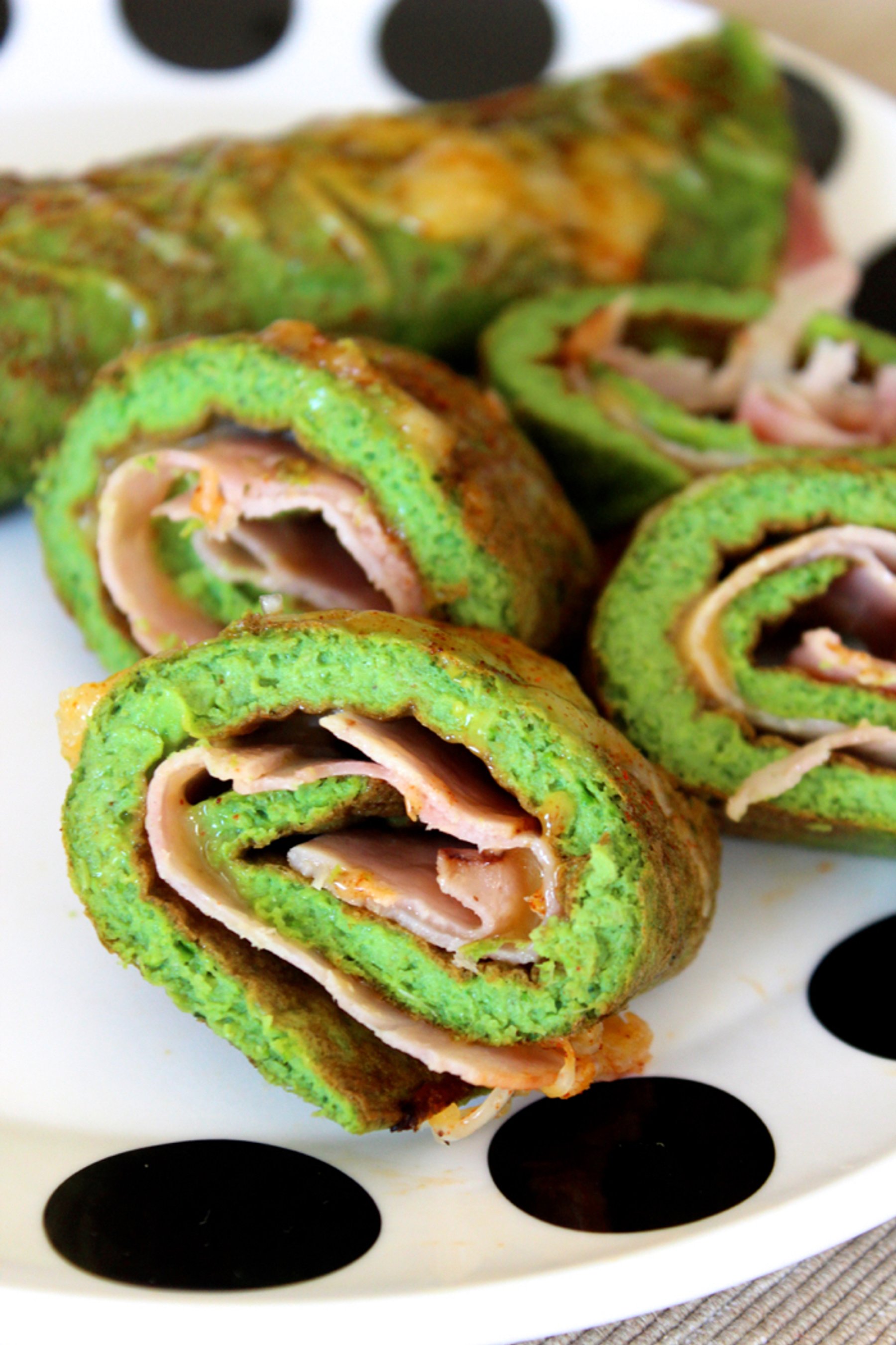 In a blender, add your eggs, salt, parsley, pepper and paprika. Add the spinach too! Blend it until well combined and there are no large leafy green chunks. Heat a small non-stick frying pan to about medium...