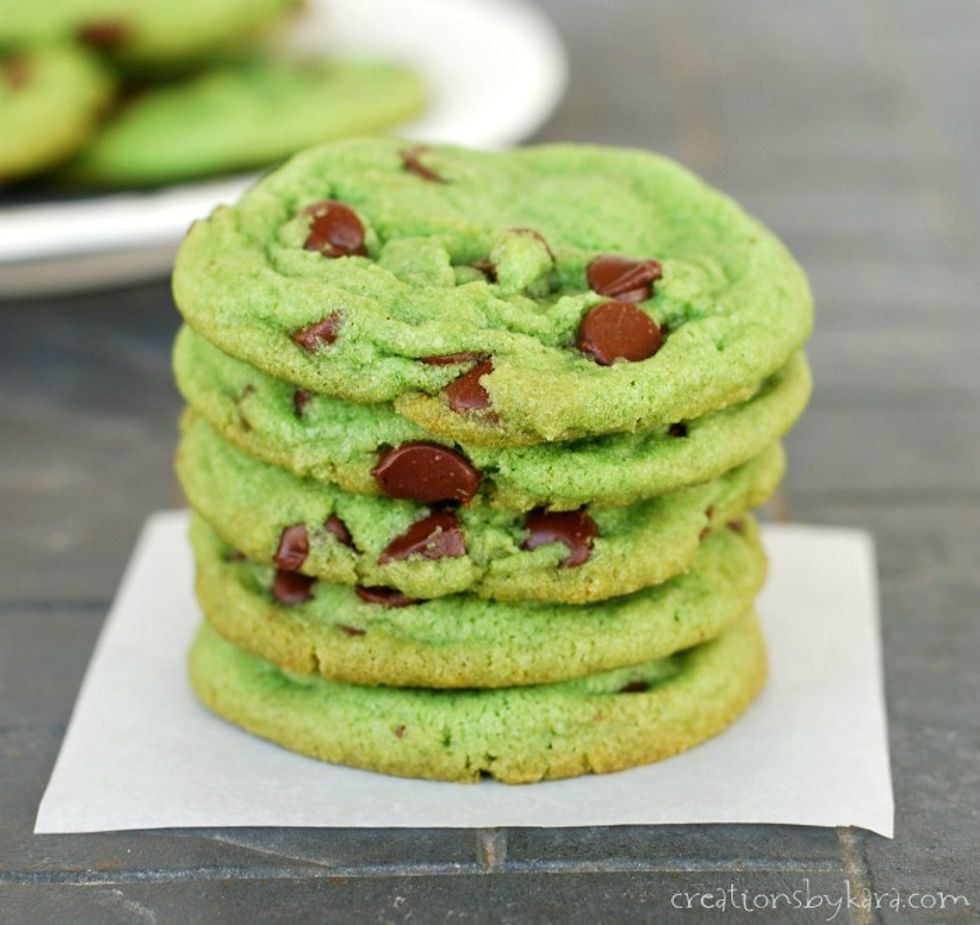 Green Mint Chocolate Chip Cookies {For St. Patrick's Day}