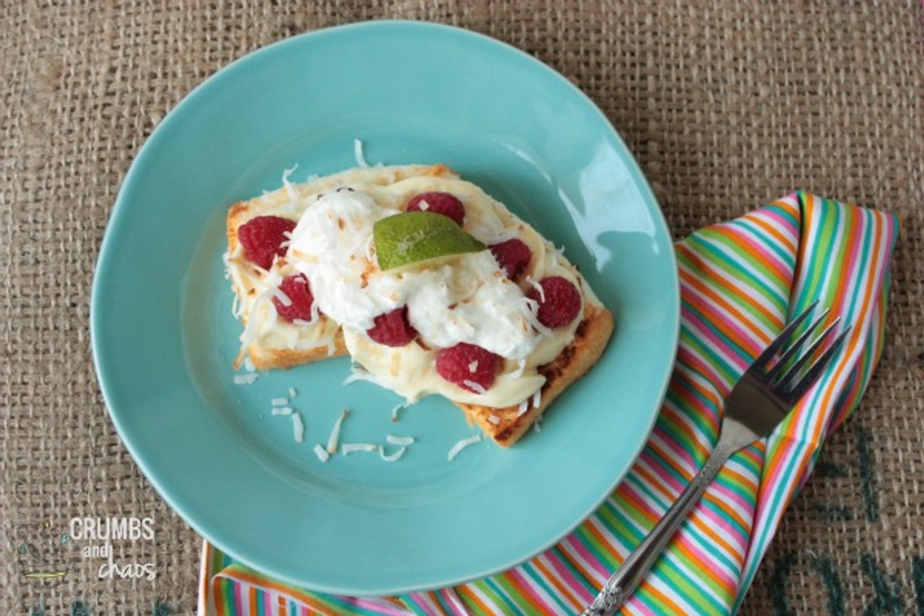 Grilled Angel Food Cake with Key Lime Pudding and Raspberries