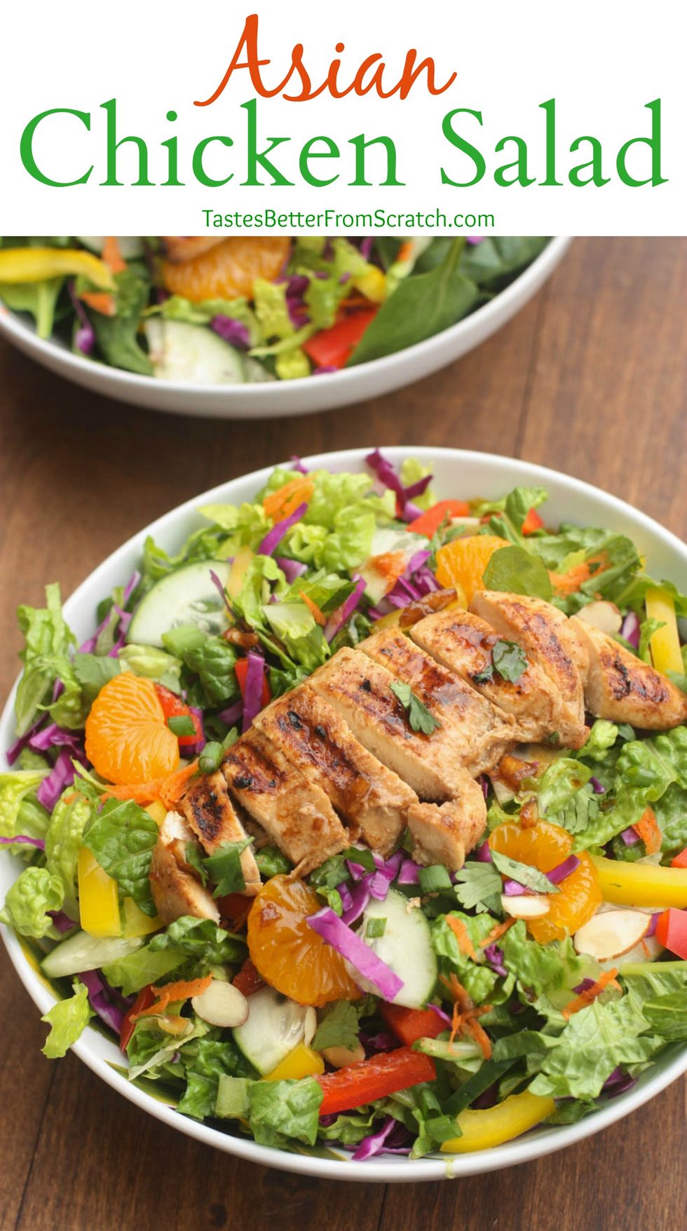 Asian Chicken Salad loaded with tons of yummy ingredients like mandarin oranges, cucumbers and an awesome marinated and grilled chicken.
