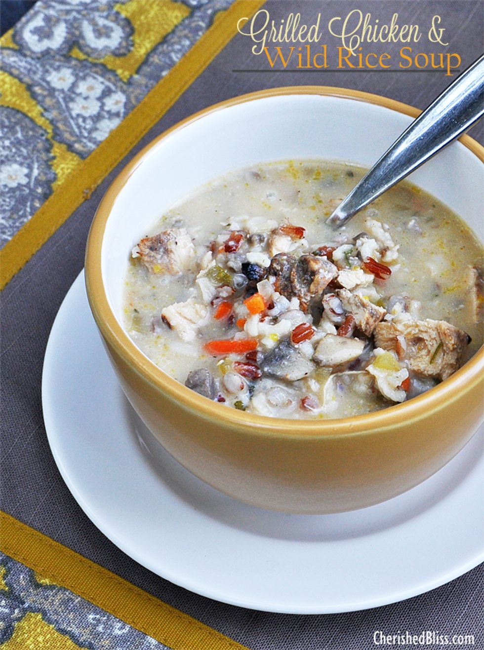 This grilled chicken and wild rice soup is creamy, yet smooth, and has the perfect broth to rice ratio. In the past, I have often prepared a boiled chicken and wild rice soup in which the rice absorbs all of the broth, resulting in a thick mush. Unlike boiled chicken, grilled chicken enhances all of the flavors that are included in this soup and gives the soup a pleasant aroma that warms the soul without the mush. This charming bowl of soup is sure to bring the whole family to the table.