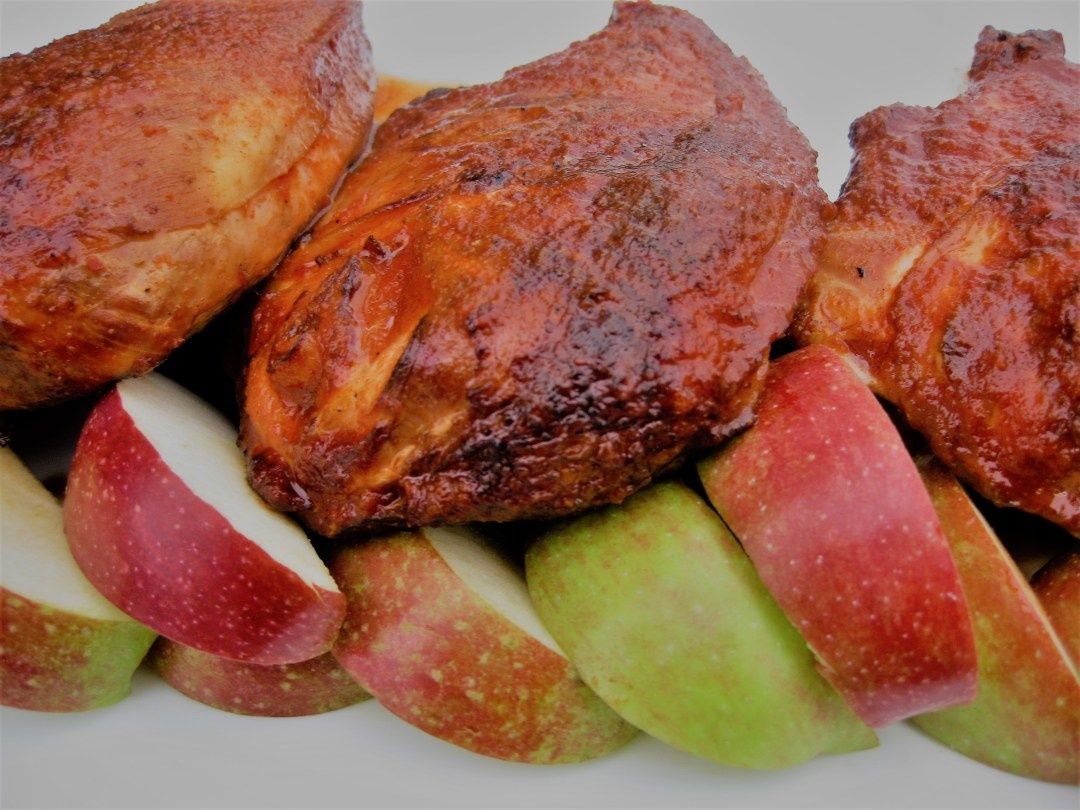 Chicken Breast that has been grilled over charcoal and dipped in a apple cider pepper sauce