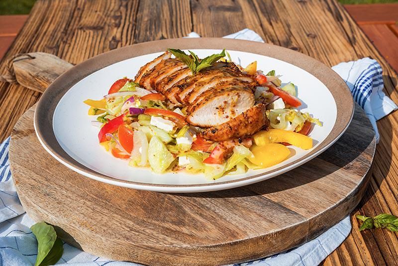 Grilled chicken salad anyone? The summer is over by now, but the weather is still pretty nice so why not fire up the grill once more?