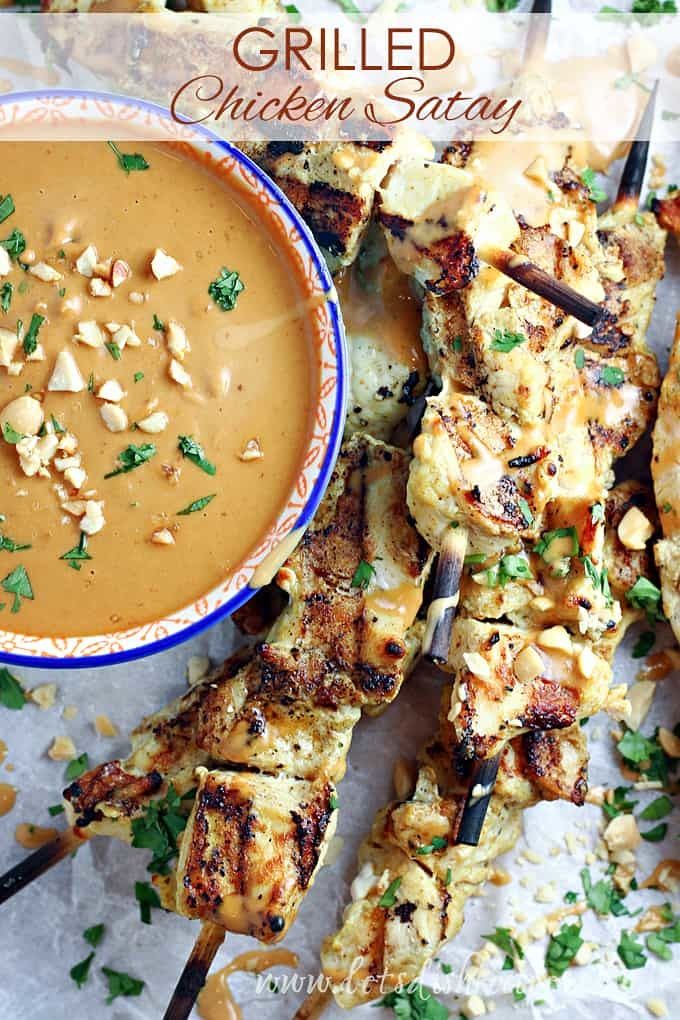 Grilled Chicken Satay: Chunks of chicken breast are marinaded in coconut milk and Asian spices, then grilled,
