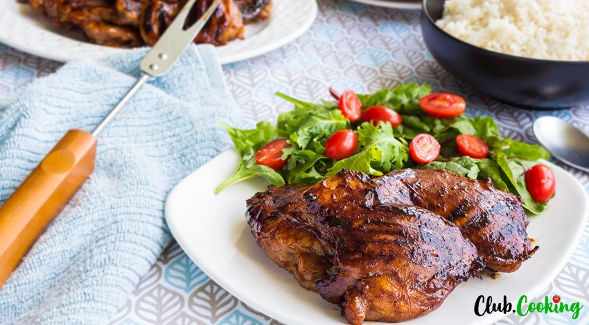 Grilled chicken thighs are perfect summer barbecue meal. Crispy, bursting with flavors chicken thighs are juicy and tender, and oh so tasty. Marinated in a homemade run and liquid smoke the thighs are irresistibly flavorful and delicious.