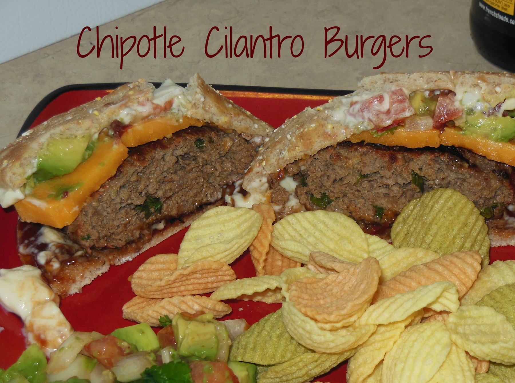 So easy... Mix up the cilantro and the chipotle with the beef forming into three firm patties. Cook on a heated outdoor grill 5-7 minutes per side on medium heat. My hubby gave them a quick sear on a higher...