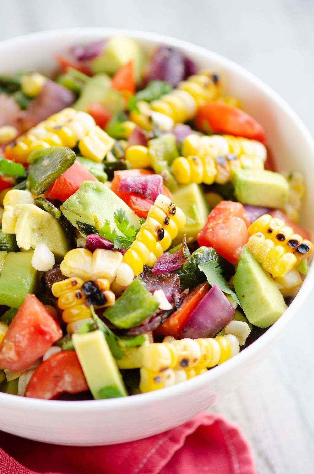 Grilled Corn Avocado Salad is a fresh and healthy side salad served with grilled meat or a salsa perfect with salty tortilla chips.