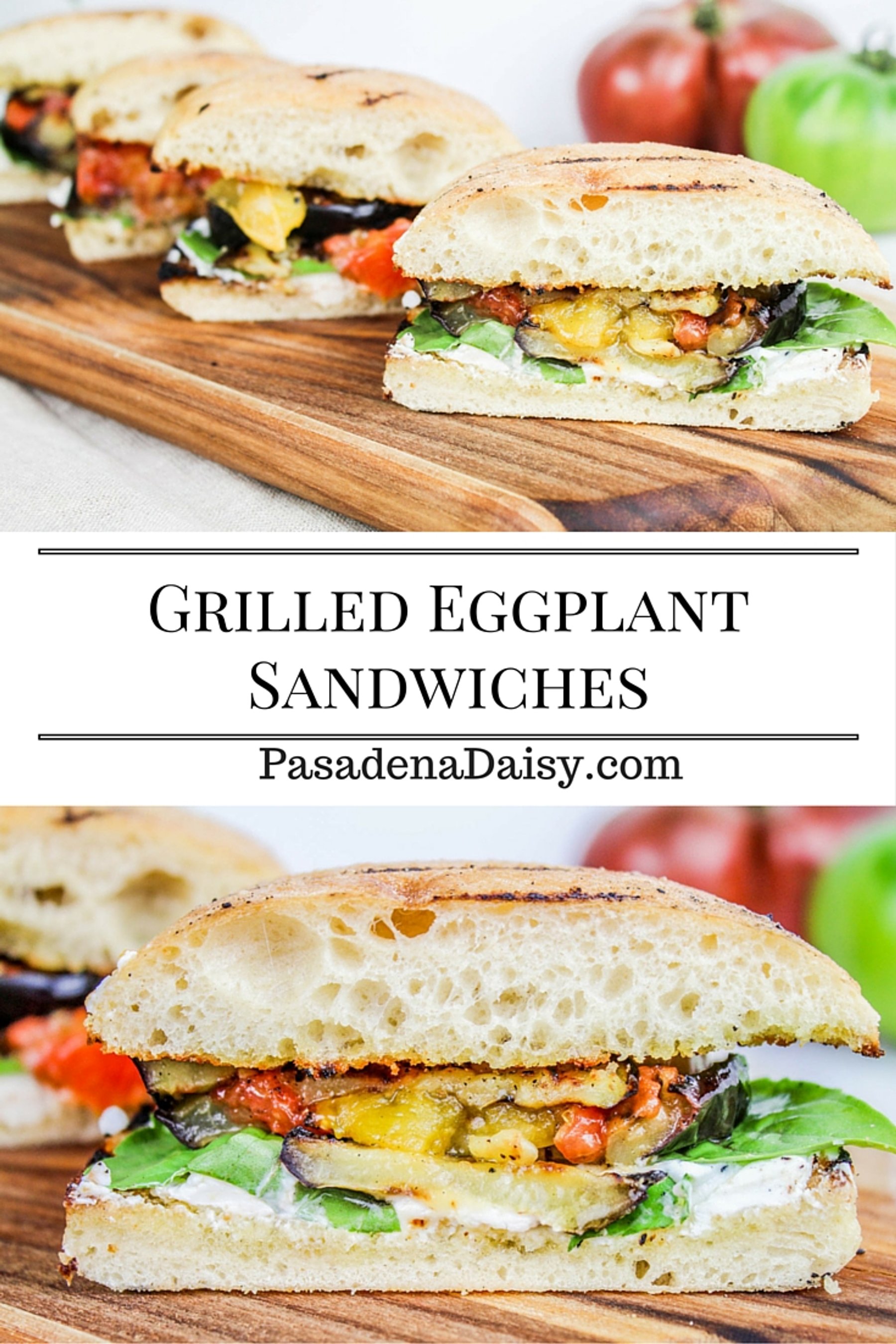 A delicious vegetarian, eggplant, tomato and goat cheese sandwich that is grilled to perfection and perfect for a meatless meal.