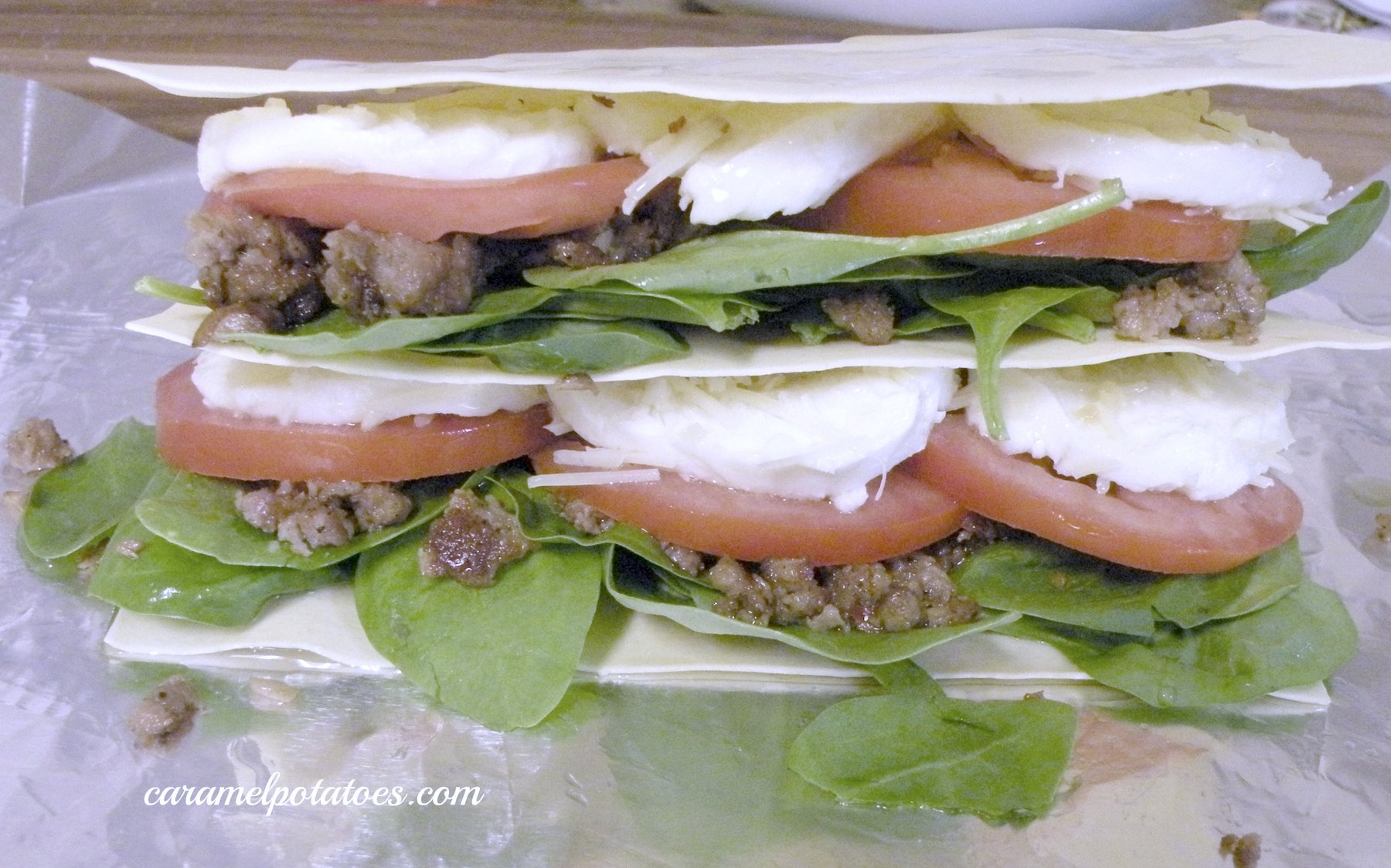Look out, lasagna has a new summer makeover. Fresh mozzarella, tomatoes and spinach paired with garlic, parmesan and a little Italian sausage roasted on the grill till the cheese gets melty and the noodles soft and tender {YUM}; this takes lasagna to a whole new level of fresh taste!