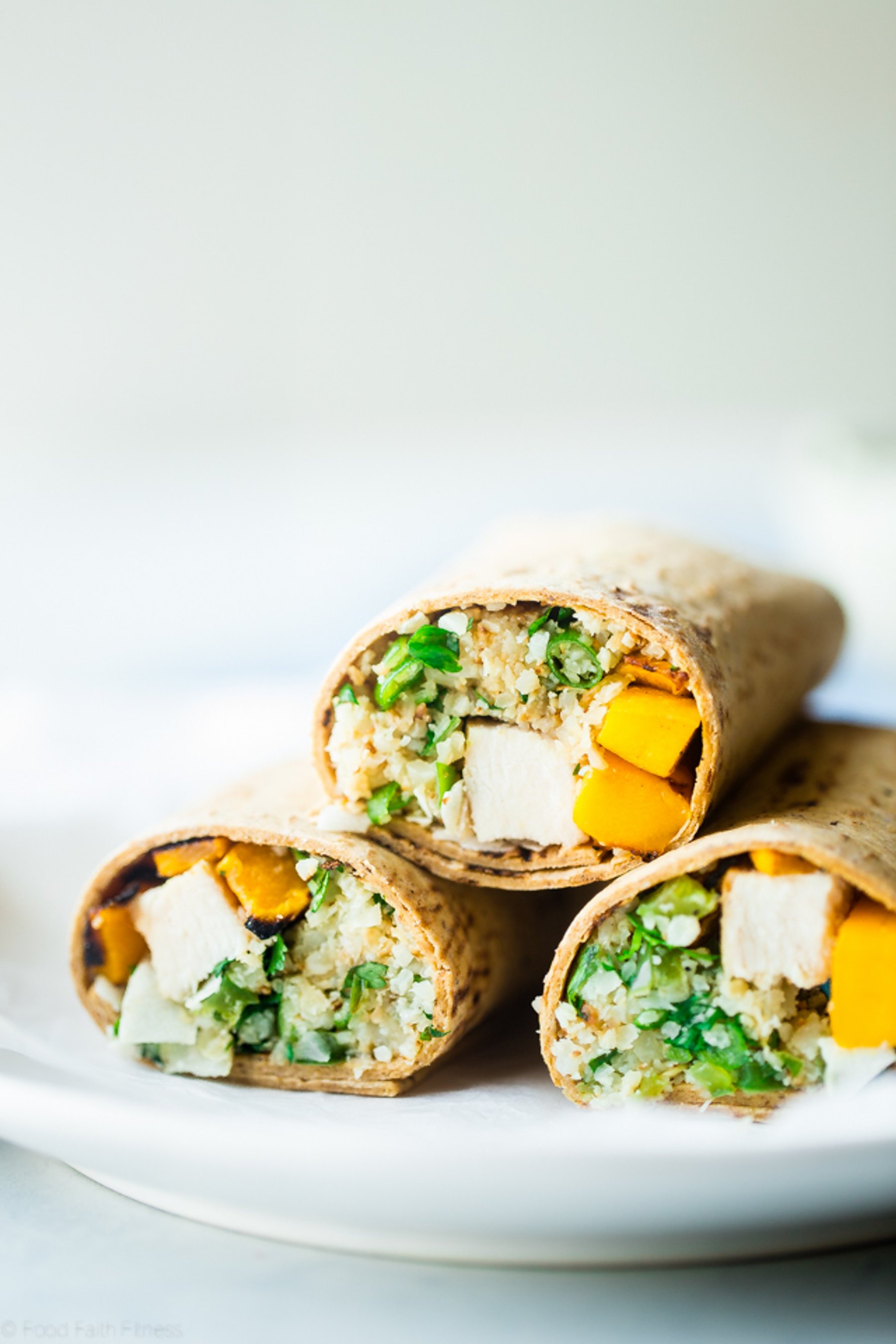 This healthy, smoky-sweet grilled mango chicken wrap has ginger cauliflower rice, jalapeno and spinach! It’s a quick and easy portable meal that’s big on flavor!