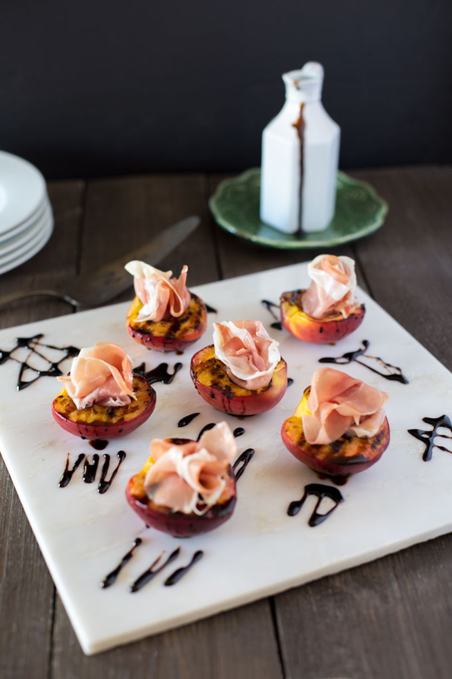 Grilled peaches with prosciutto. Delicious and elegant as either a starter or side dish. Velvety sweet, smoky and salty all in one bite. Perfect for summer!