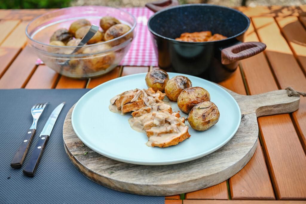 I love to prepare food on the grill and today, I would like to show you a very simple recipe that all of your friends will love. Let's make my favorite marinated pork tenderloin steaks with a rich mushroom sauce and potatoes as a side.