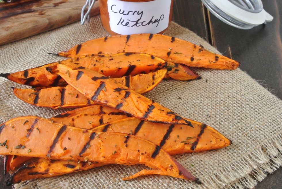 Grilled Sweet Potato Wedges with Curry Ketchup