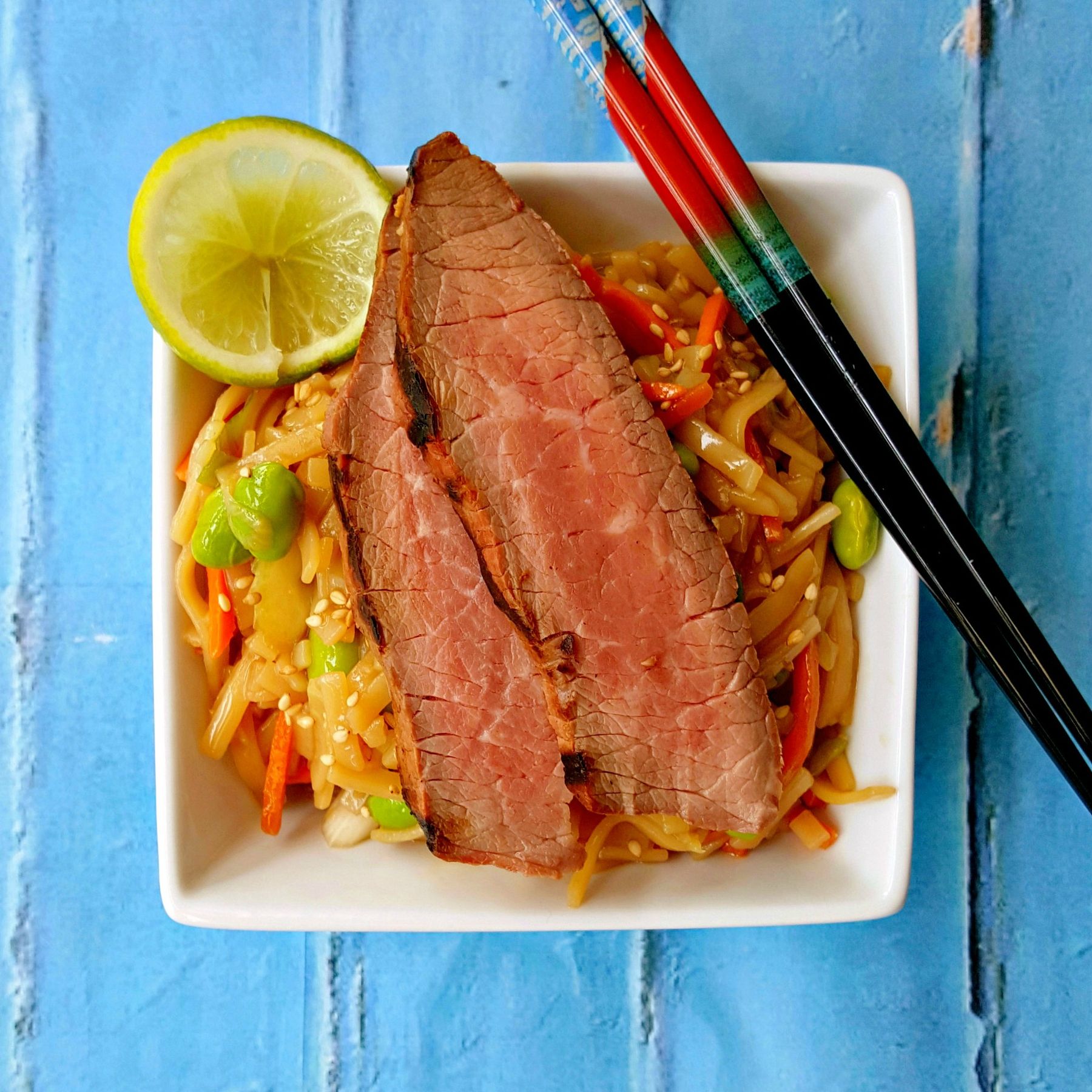 Being tied up in traffic doesn\\\'t mean you\\\'ll have to tied up in the kitchen when you get home. This Grilled Teriyaki Steak and Noodle Salad is deliciously on the table in under 30 minutes.