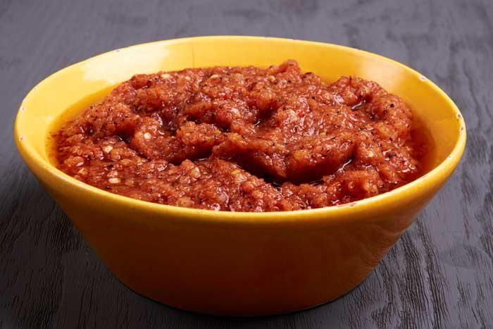 Rustic grilled tomato salsa or salsa de jitomate asado. The ingredients are charred on the grill which give the salsa a rich smokiness.