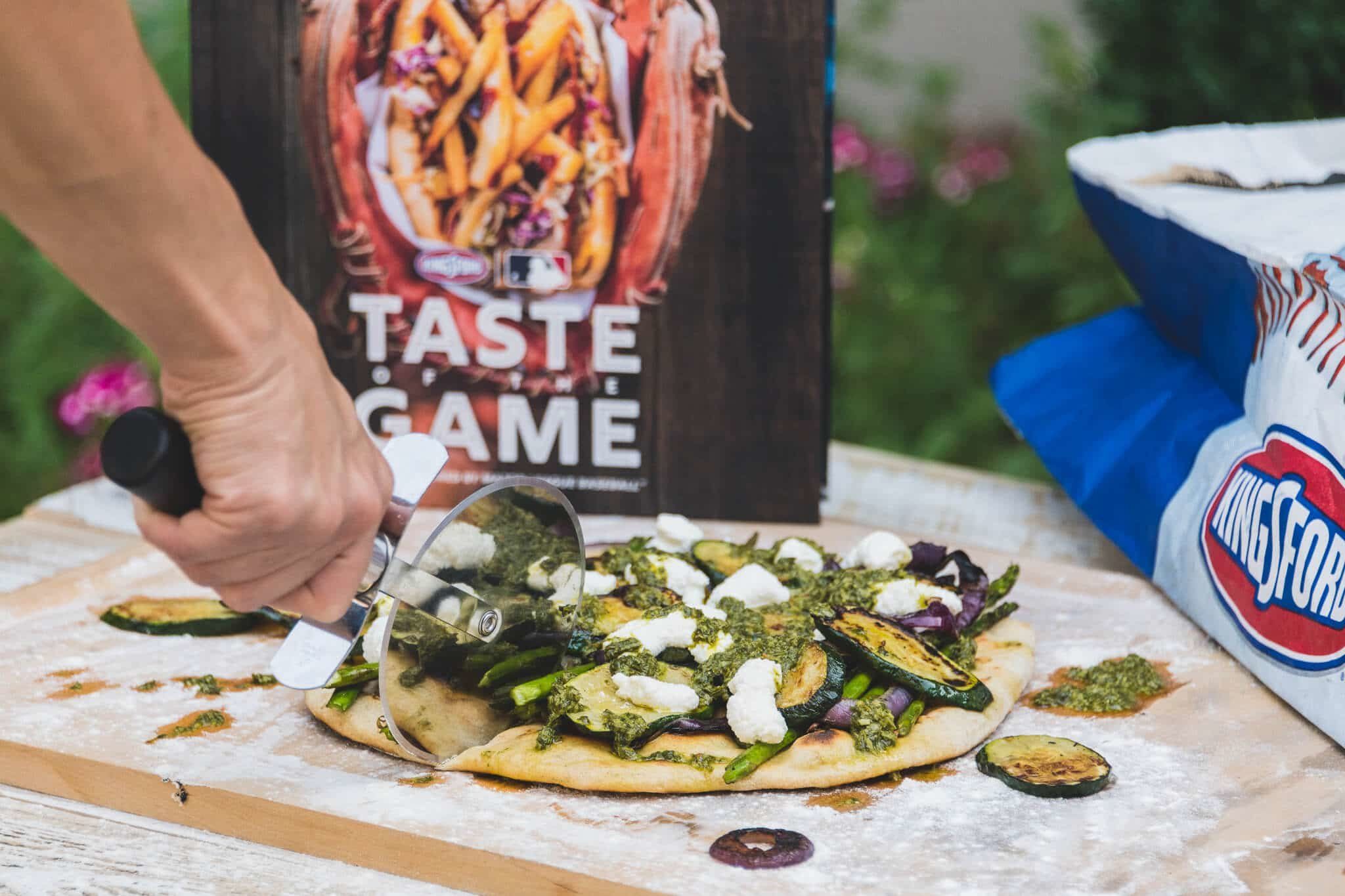 This grilled vegetable flatbread is inspired by San Fransisco's strong Italian food heritage. Throw in a brilliant salsa verde and grilled asparagus, and this non-traditional pizza becomes every veggie lovers' dream.