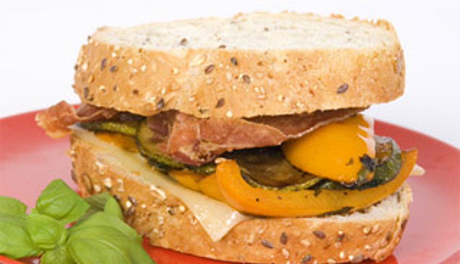 On your slices of bread baked, put a slice of Swiss cheese, cooked vegetables and the prosciutto. Serve immediately.