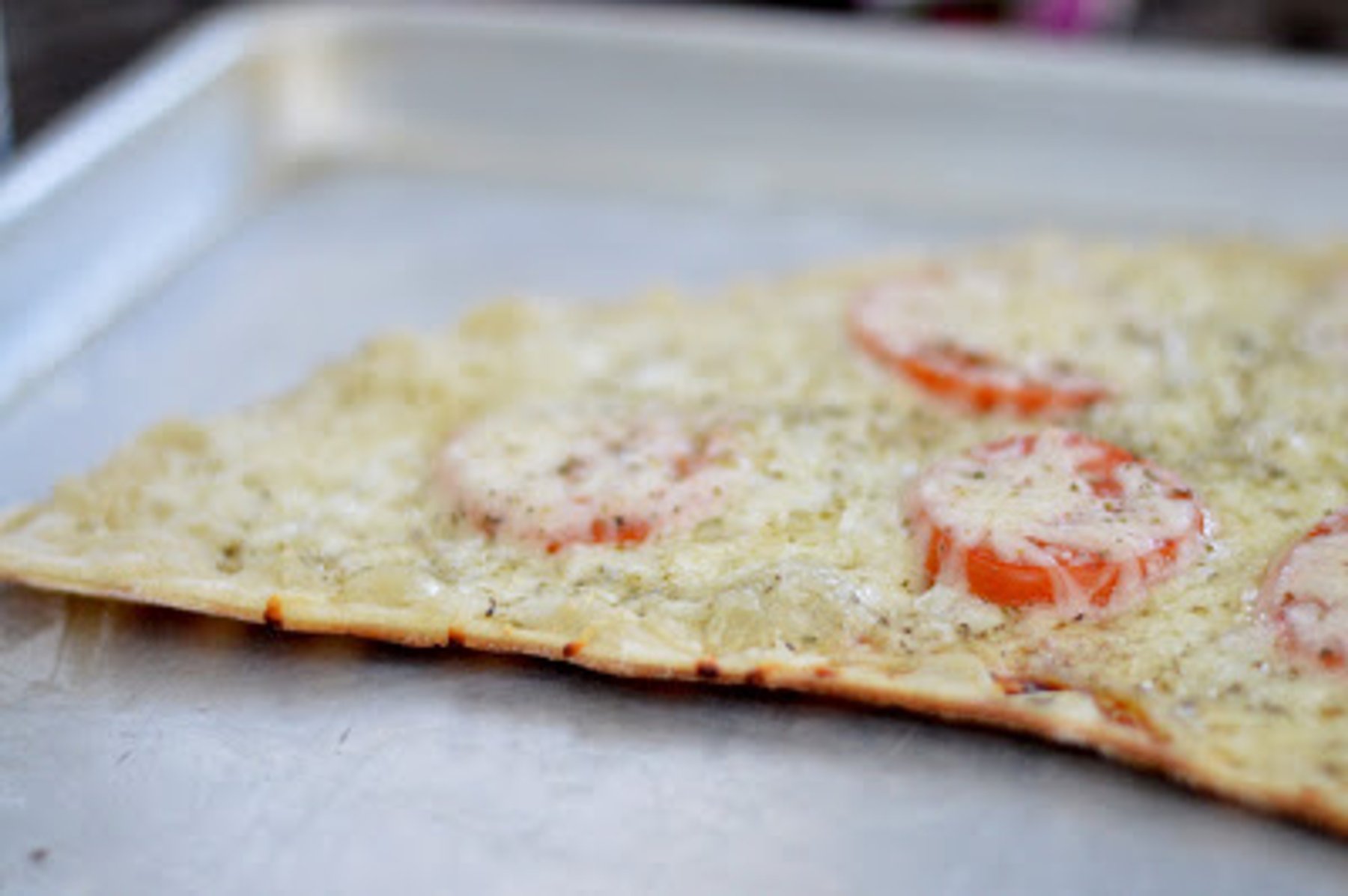 Preheat your grill to medium. Roll the pizza dough very thin (in whatever shape you like) to about 9x13" and place on a baking sheet. Combine the olive oil and minced garlic in a small bowl. Carry the...