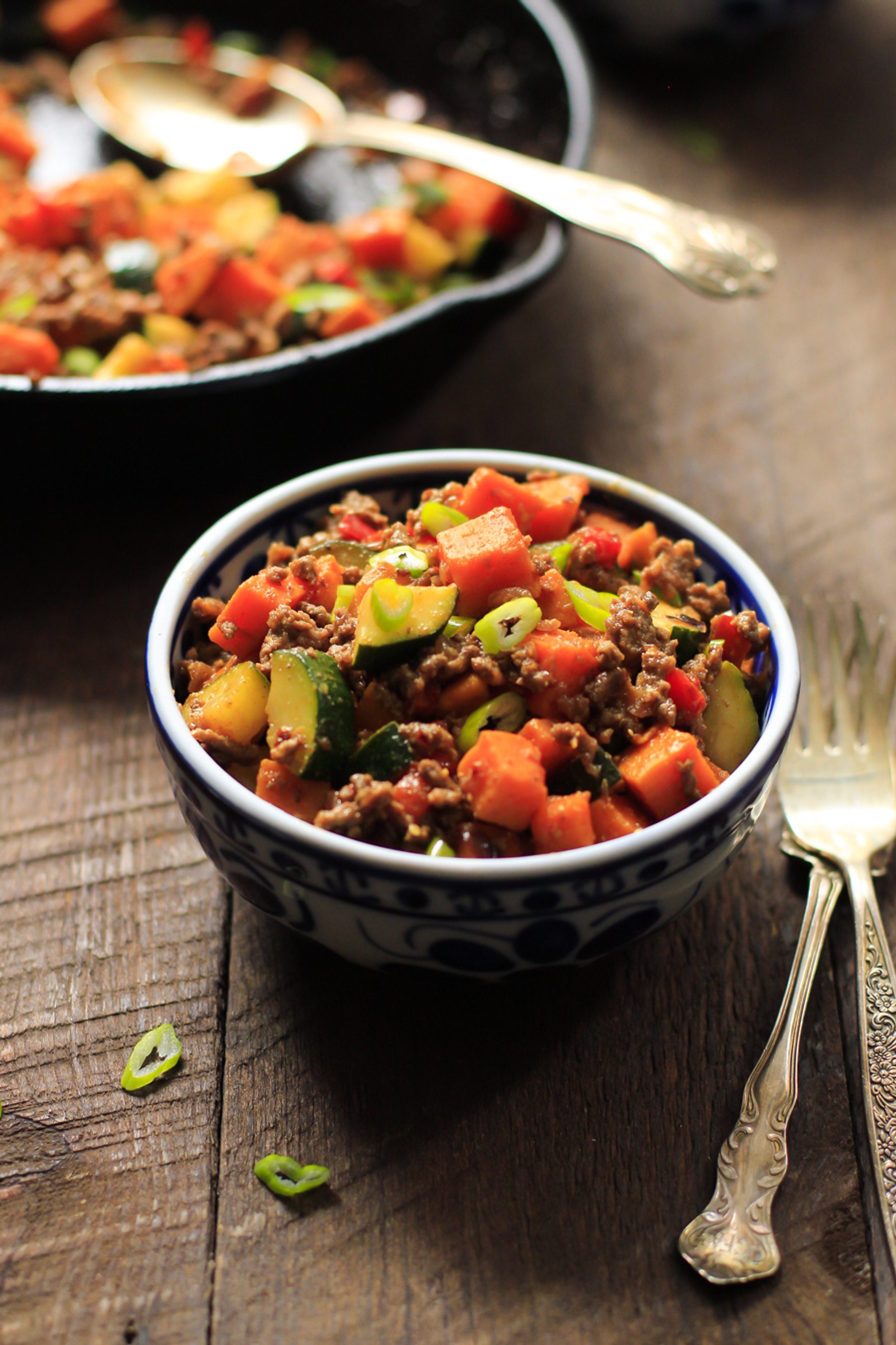 http://www.primaverakitchen.com/ground-beef-zucchini-sweet-potato-skillet/