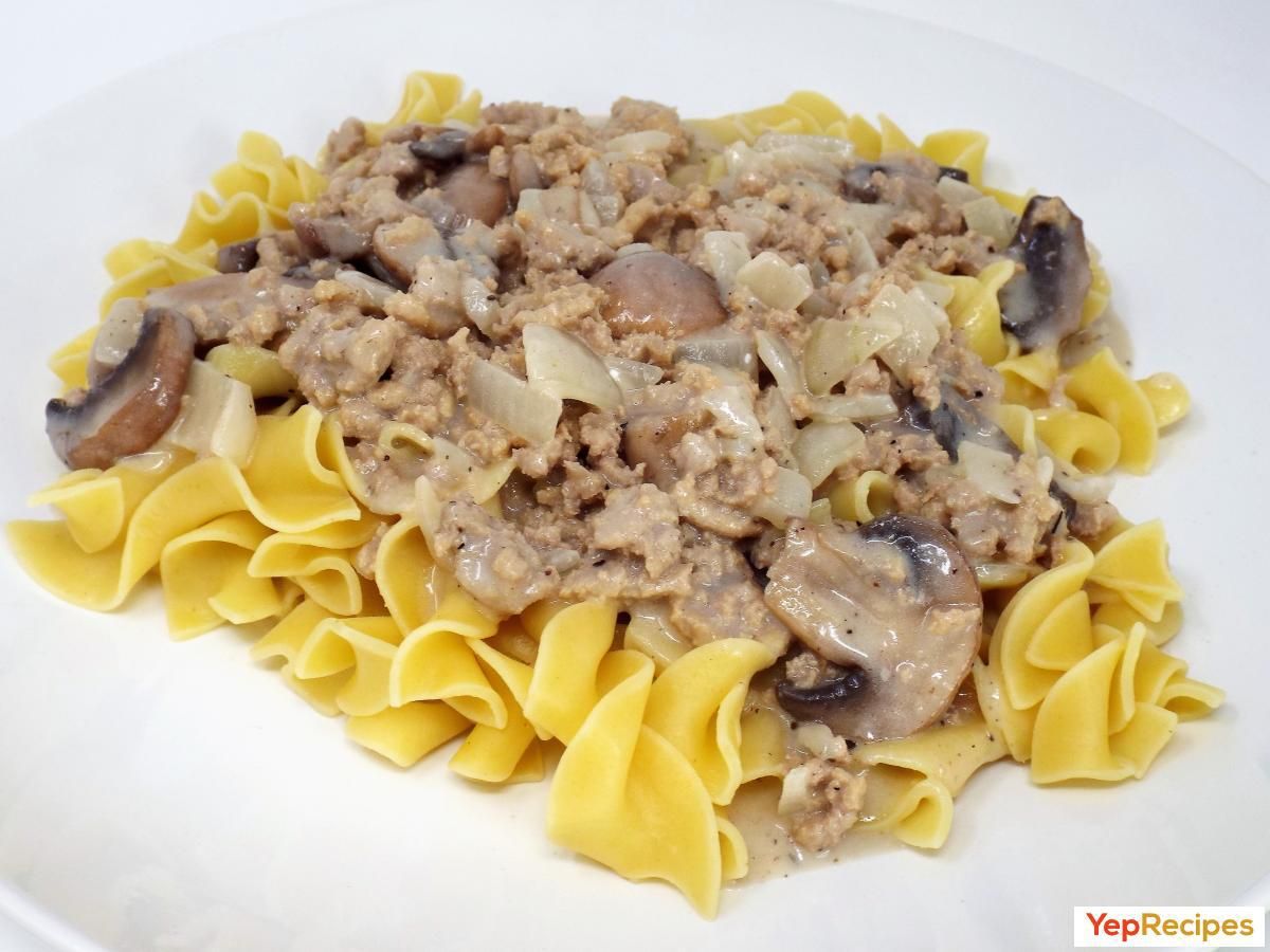 Ground Turkey Stroganoff YepRecipesFebruary 21, 2021 17 Ground turkey, onion, and mushrooms in a sour cream garlic sauce served over egg noodles.1See the full directions on my site