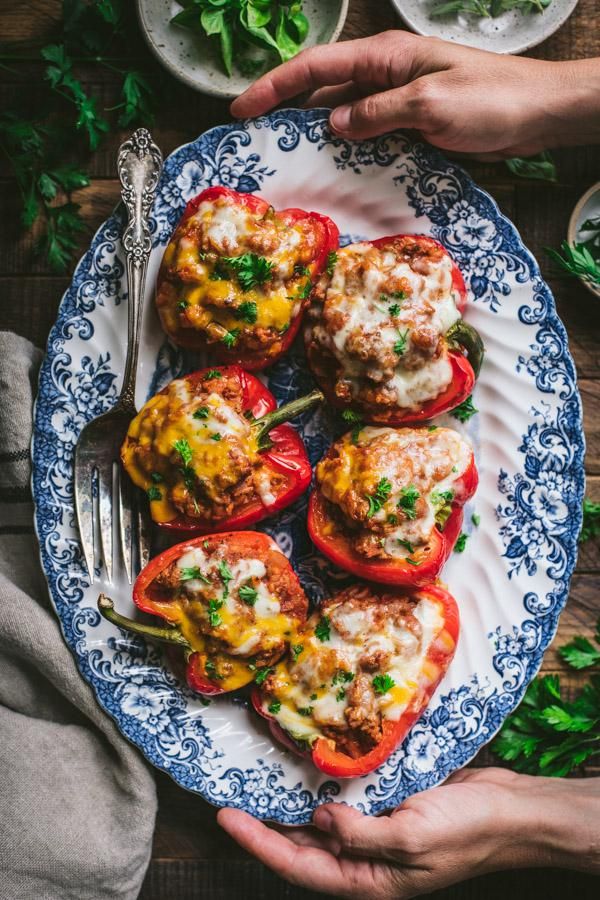 Ground Turkey Stuffed Peppers are a healthy, satisfying, and easy dinner that the whole family can agree on! Each sweet bell pepper is filled with meat, rice and cheese in a zesty tomato sauce, then baked until warm and tender. Serve the turkey stuffed bell pepper recipe with a side of cornbread, a crisp green salad, or a basket of flaky buttermilk biscuits.