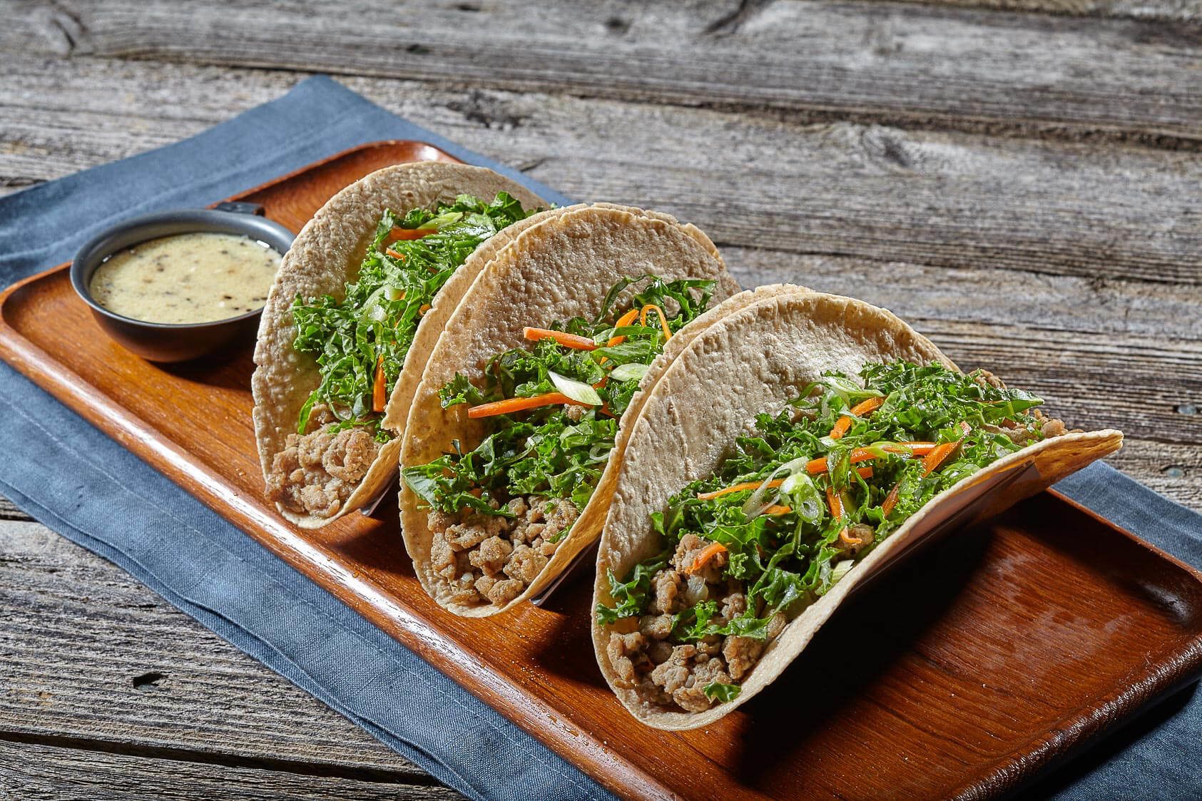 Taste these delicious tacos made with ground turkey and kale slaw! Recommend making with Mission's Carb Balance tortillas so they're lower in calorie and carbs!