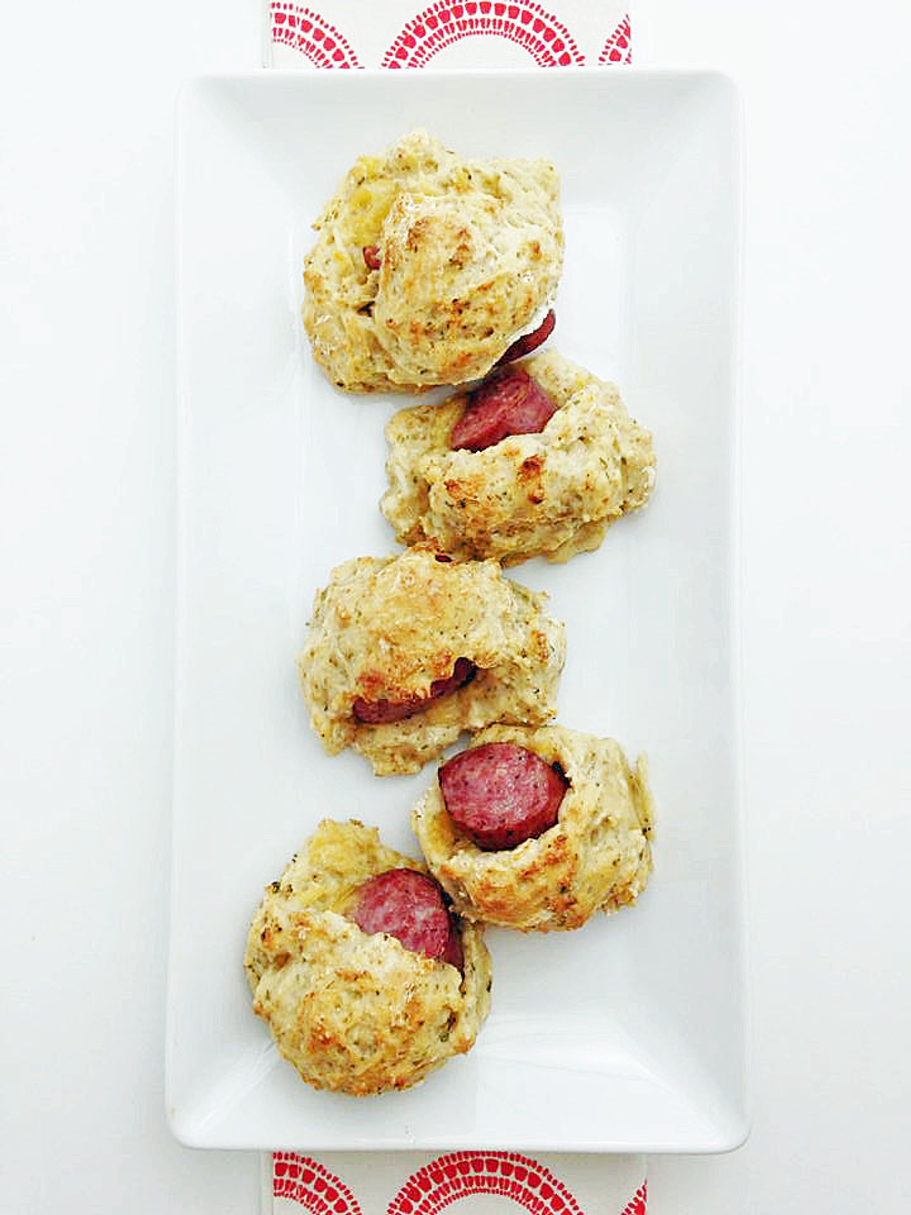 Juicy sausage wrapped in a light biscuit dough