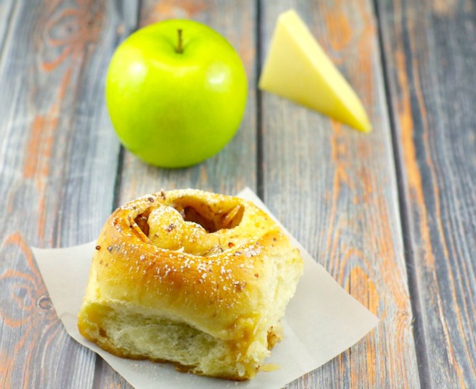 Gruyère Apple Pie Cinnamon Buns with Vanilla Mocha Glaze