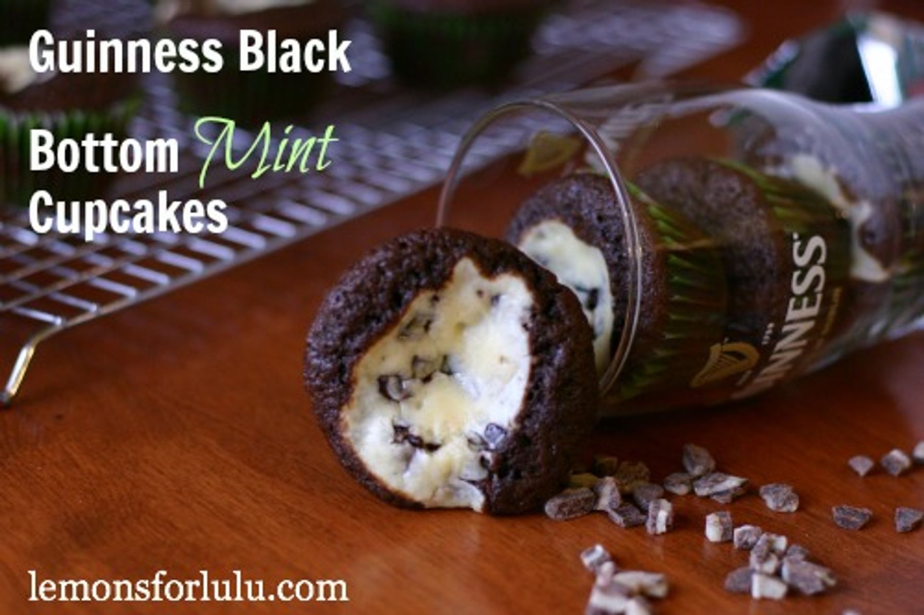 A chocolate cupcake made with Guinness beer. The center of each cupcake is a creamy mint filling.