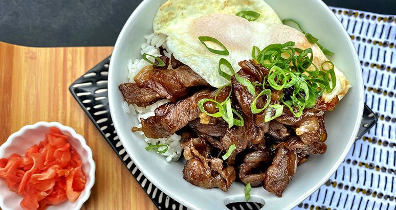 Gyudon with Miyazakigyu Wagyu ribeye is simply delicious! The over-easy eggs compliment the Japanese Wagyu beef and short grain rice! The pickled ginger on the side adds to the depth of flavor. This recipe is perfect for hosting friends and family, as each person can devour their Gyudon bowl! Trust us, they will be savoring each bite and scraping the bottom of the bowl when they're done!