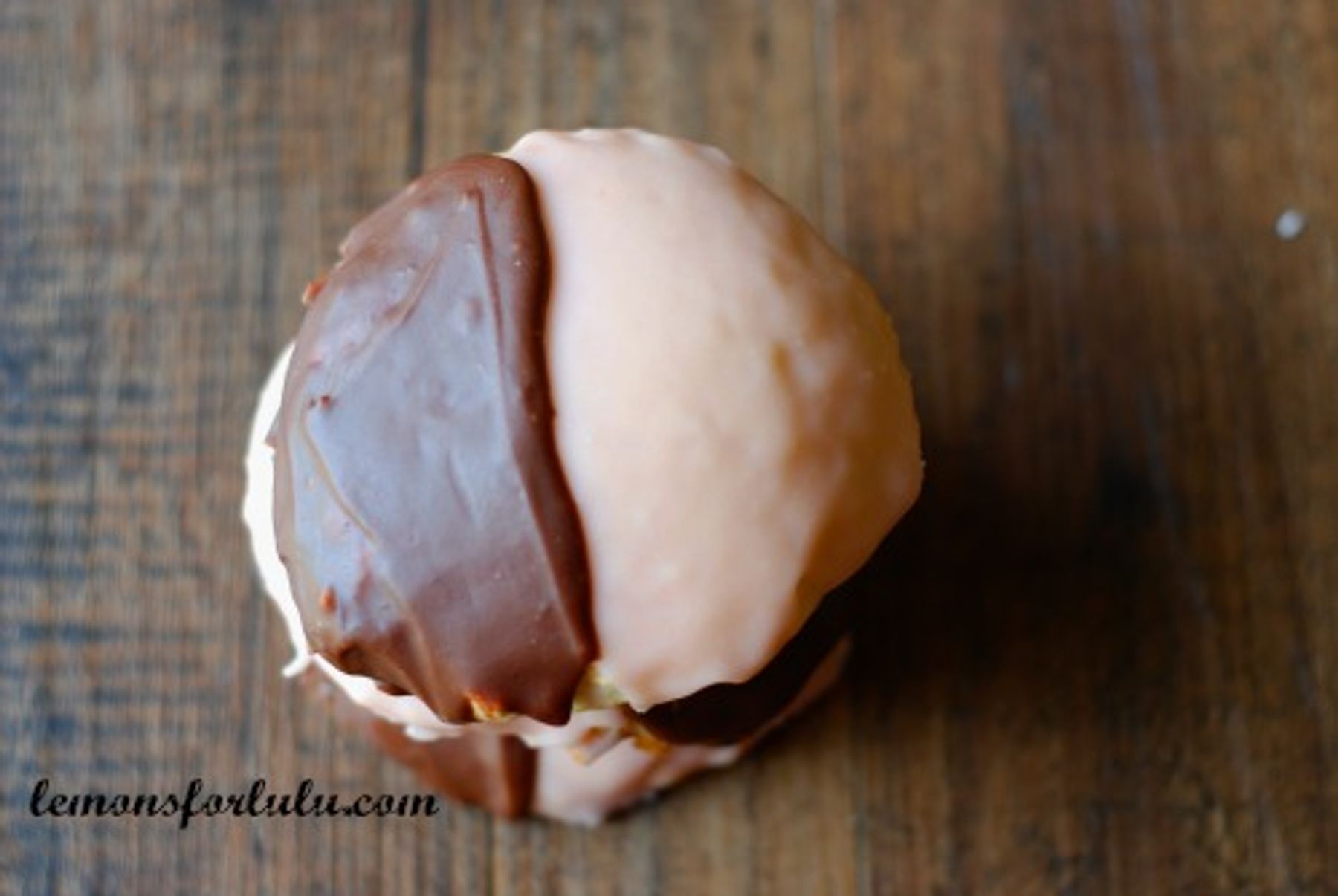 Soft cake like cookies covered in both chocolate and vanilla glaze.