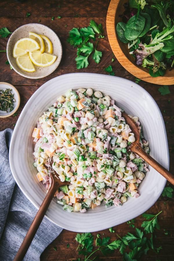 Full of simple and fresh ingredients, this ham pasta salad is the perfect side dish for your next cookout, an easy option for a light weeknight dinner, or a refreshing make-ahead lunch. You'll love the flavorful combination of peas, lemon, dill, and a creamy mayo dressing. Serve the cold ham and cheese pasta salad with grilled chicken, steak, pulled pork, cornbread, biscuits, or blueberry muffins.
