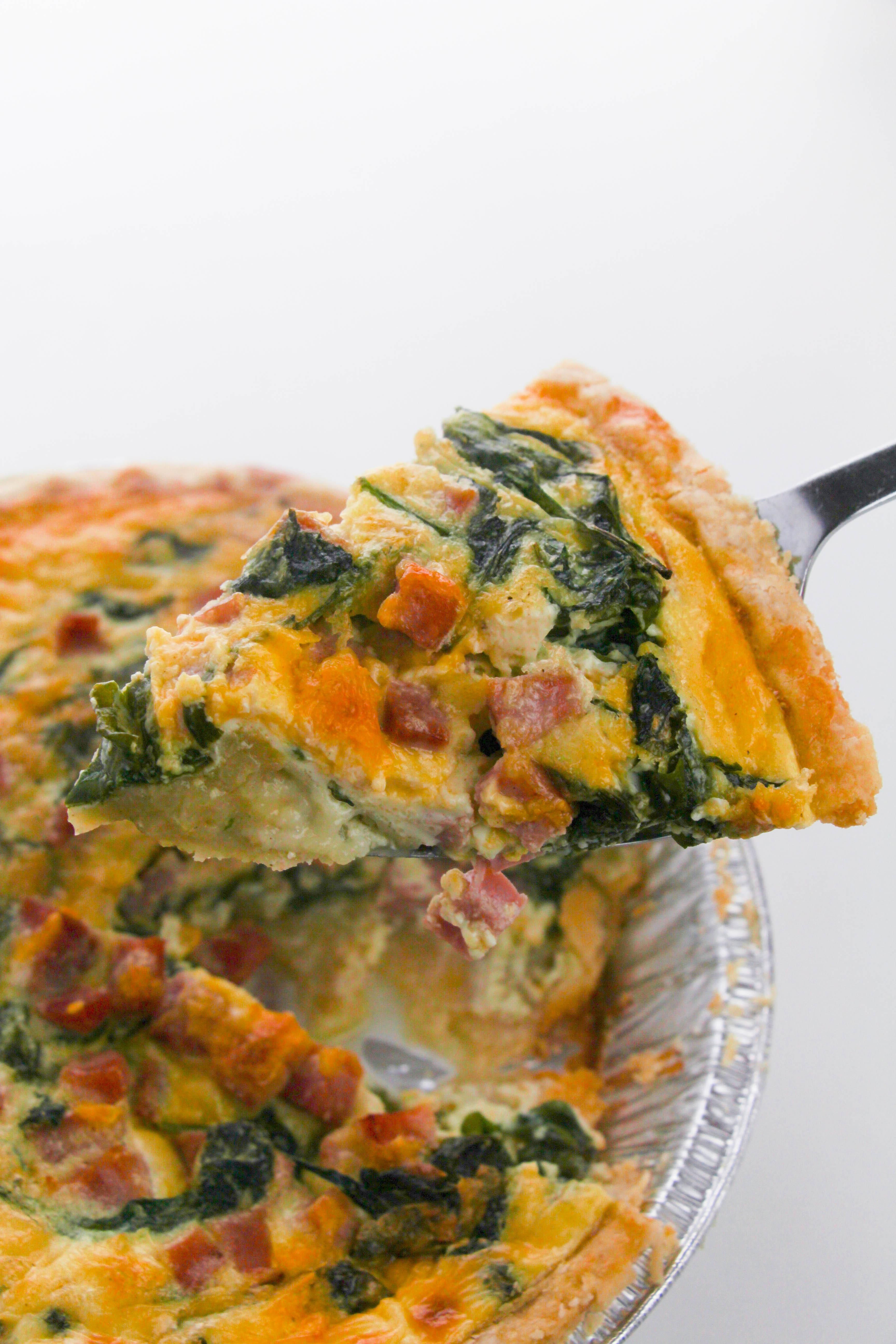 "This ham spinach cheese quiche is one of my favorite recipes. It’s versatile, easy to make, and can be eaten for any meal of the day. This quiche recipe only requires a few simple ingredients, all of which are easy to find at your local grocery store. If you love ham recipes, then you’ll love this quiche! You can make this with leftover ham, so it’s super easy to put together. Even the picky eaters in your family will enjoy this ham spinach quiche. "